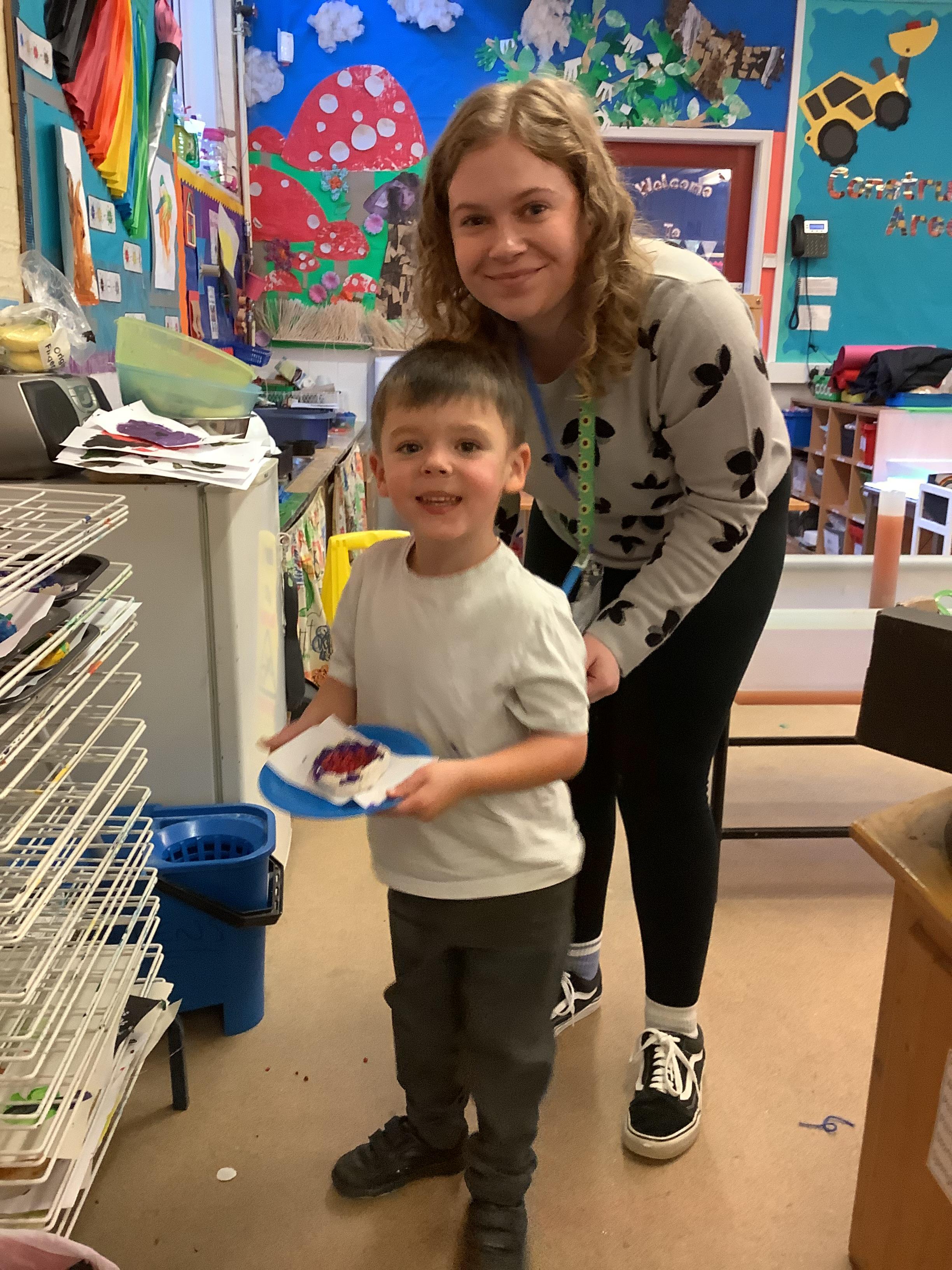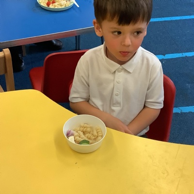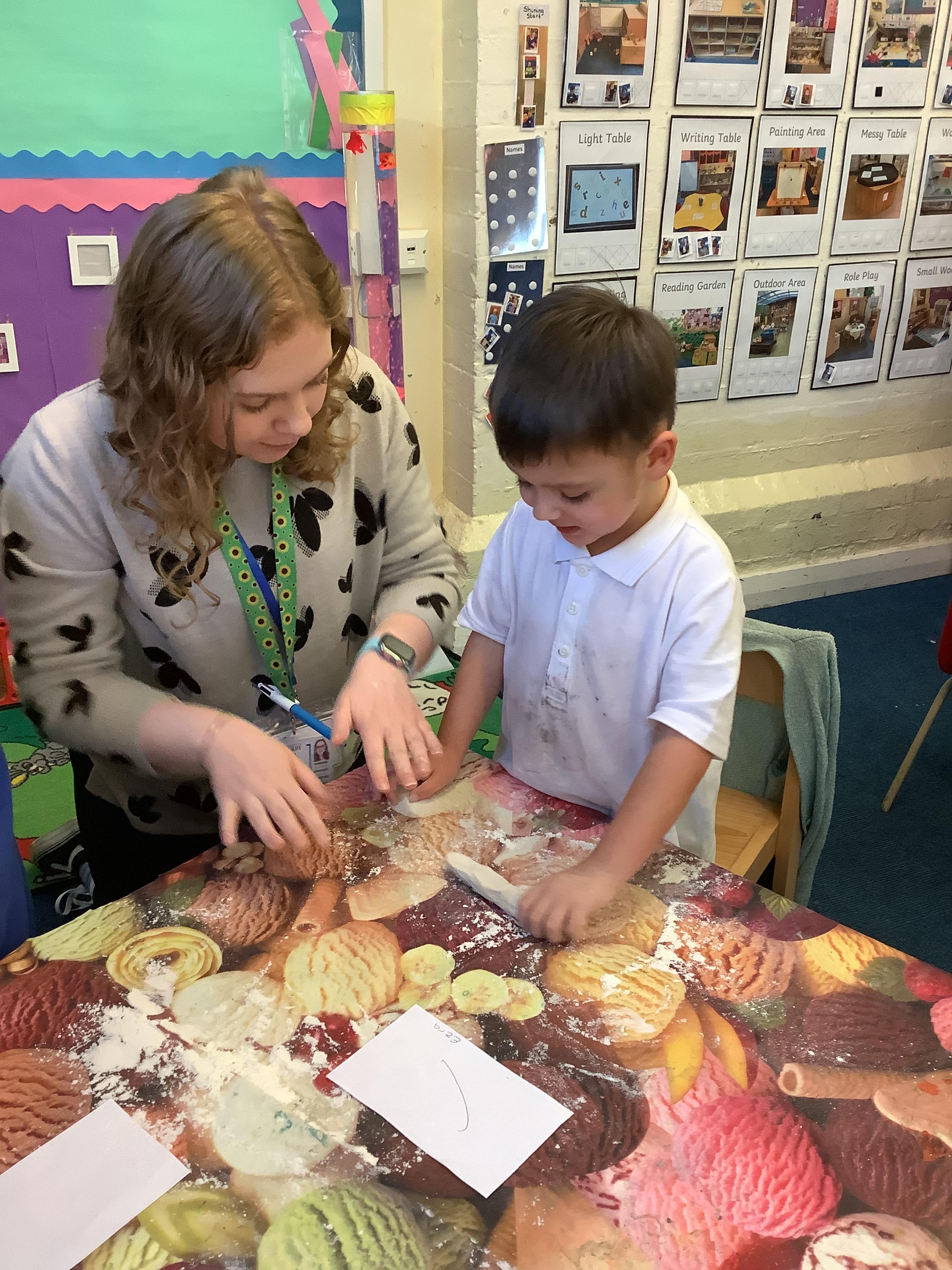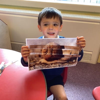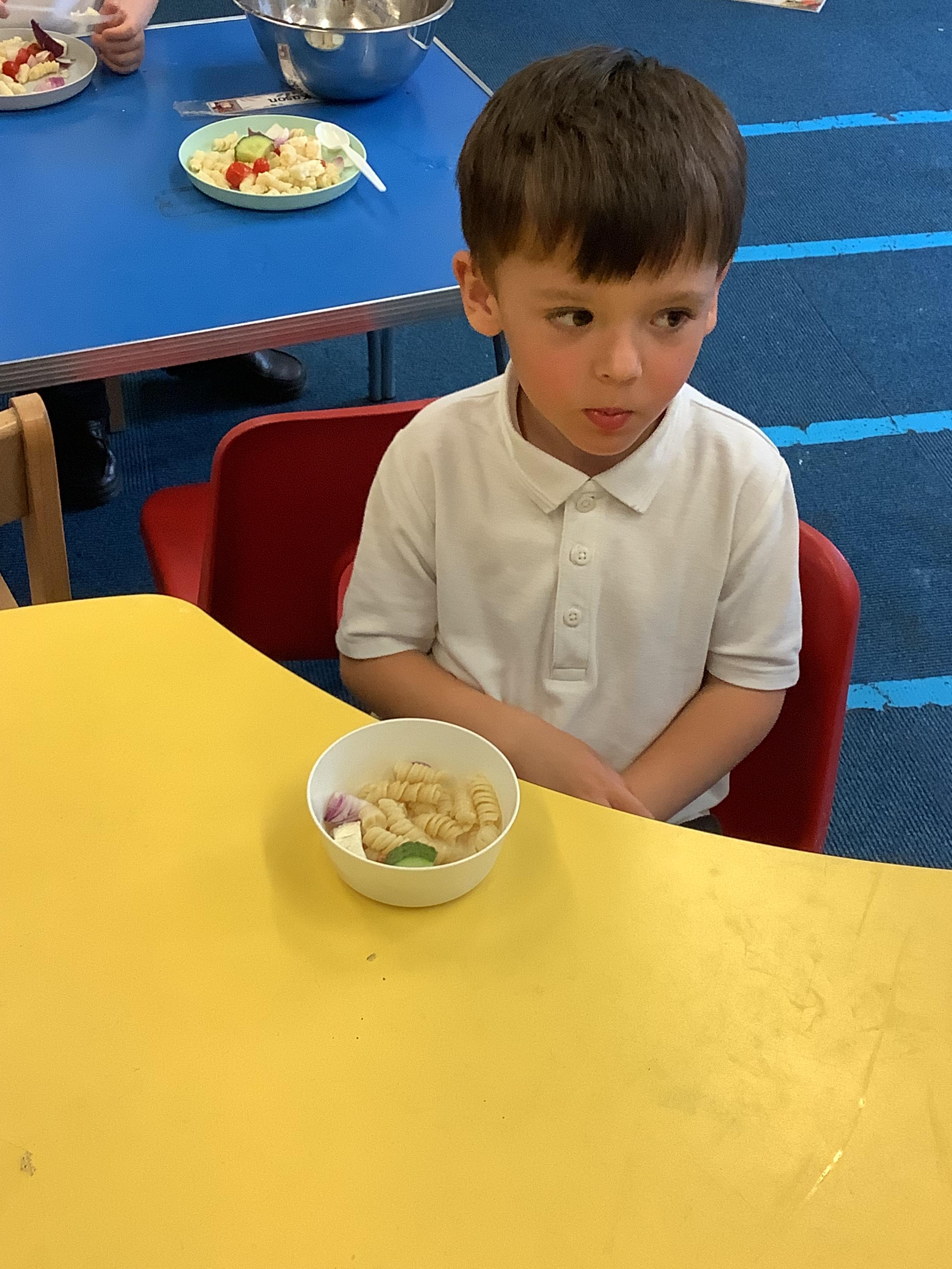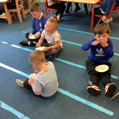 We followed instructions on how to make a chocolate mug cake as part of English experience day. We measured, we mixed, we poured and we added in our favourite sweet treats of chocolate chips, smarties and mini marshmallows. After they had finished cooking in the microwave, we let them cool before eating them. They were delicious!