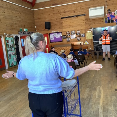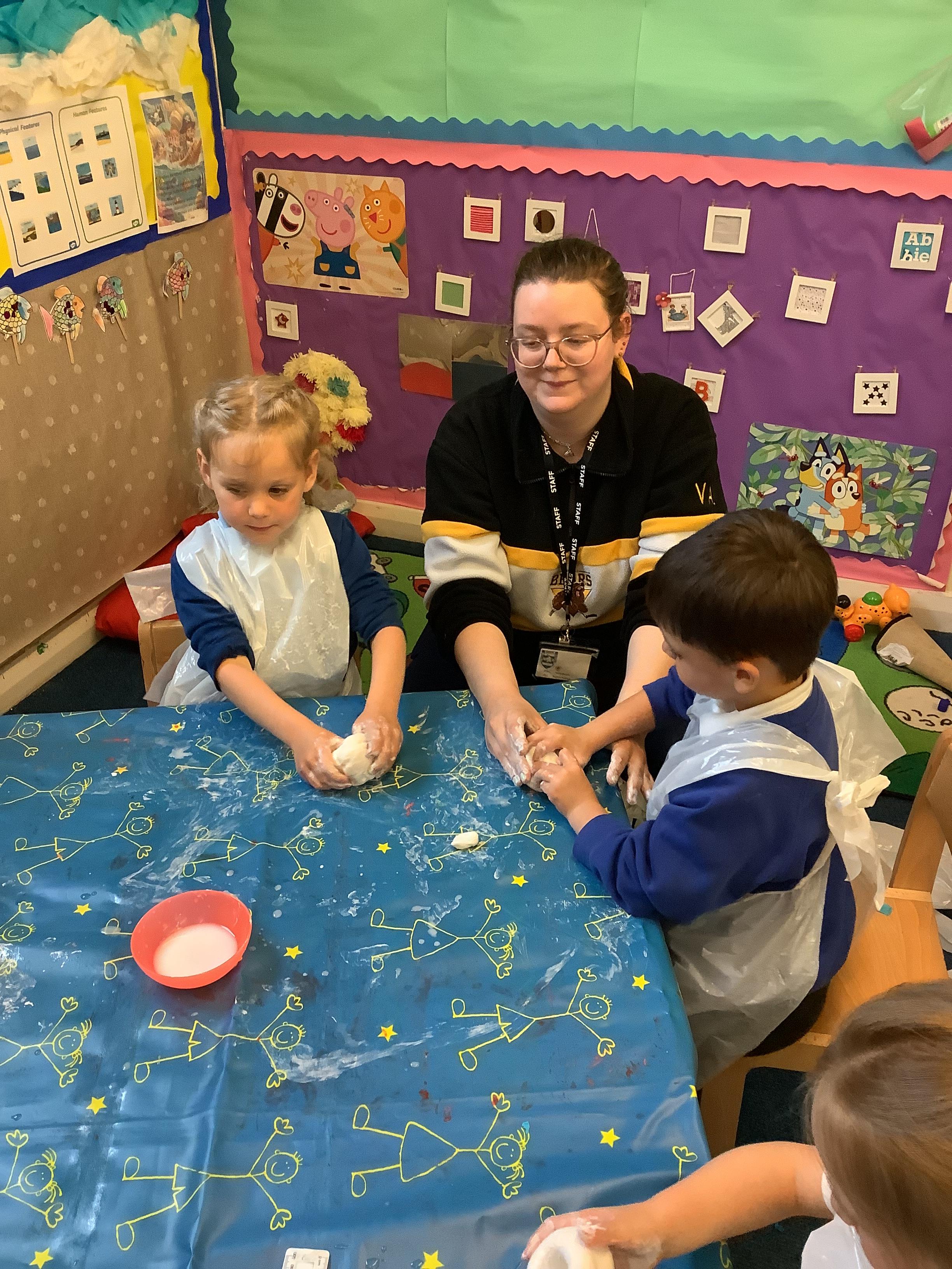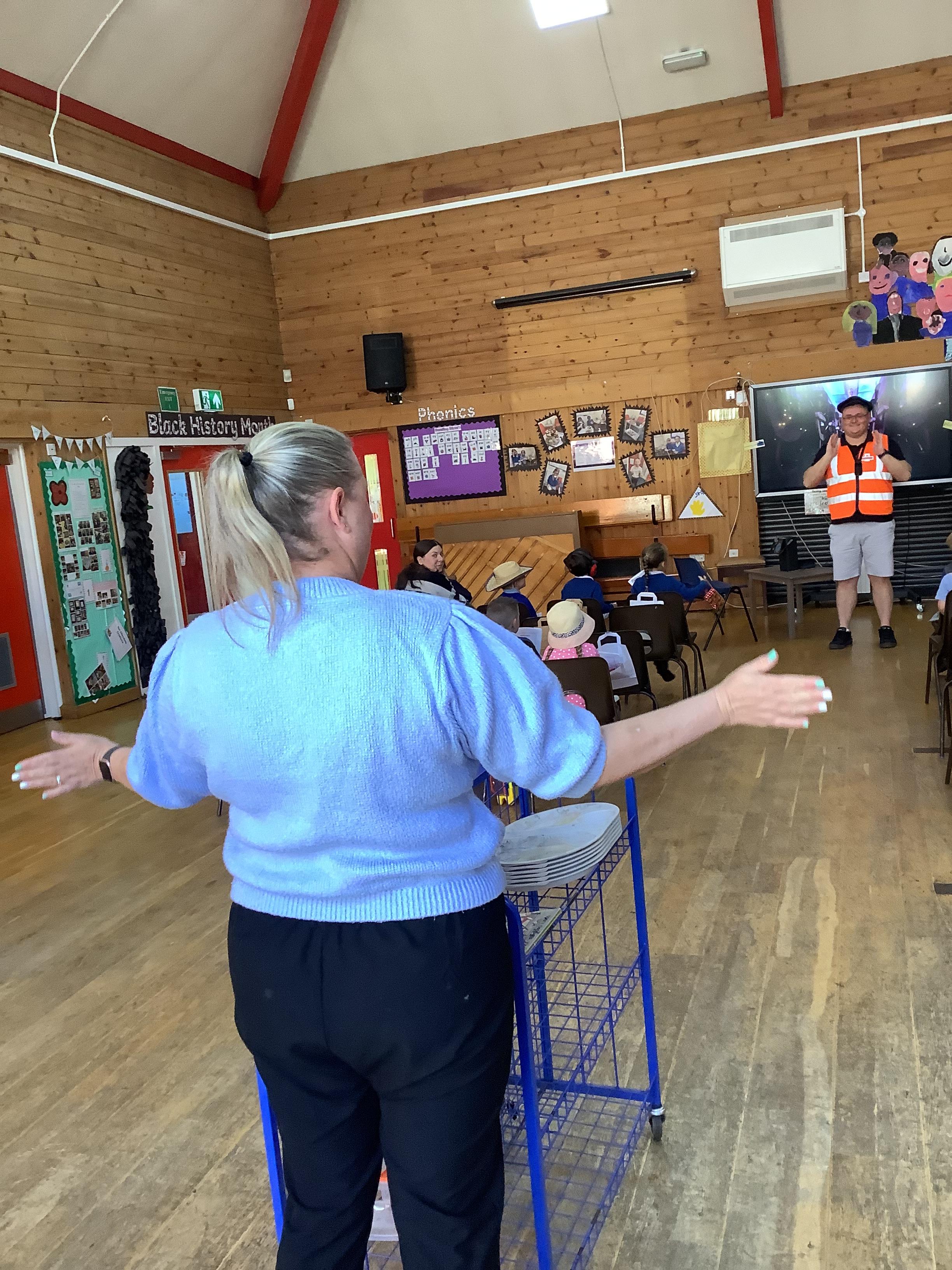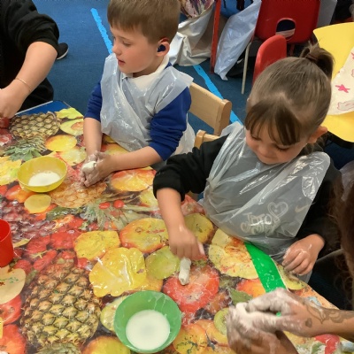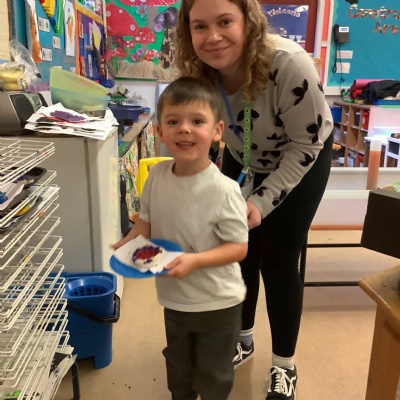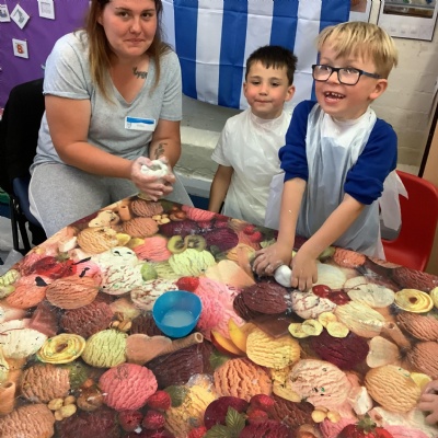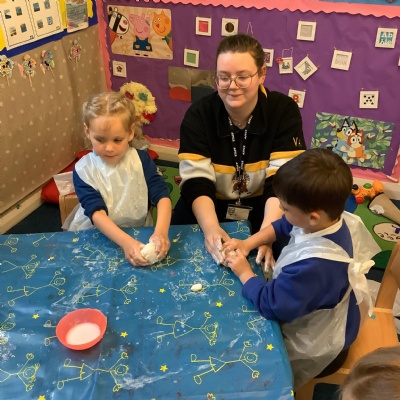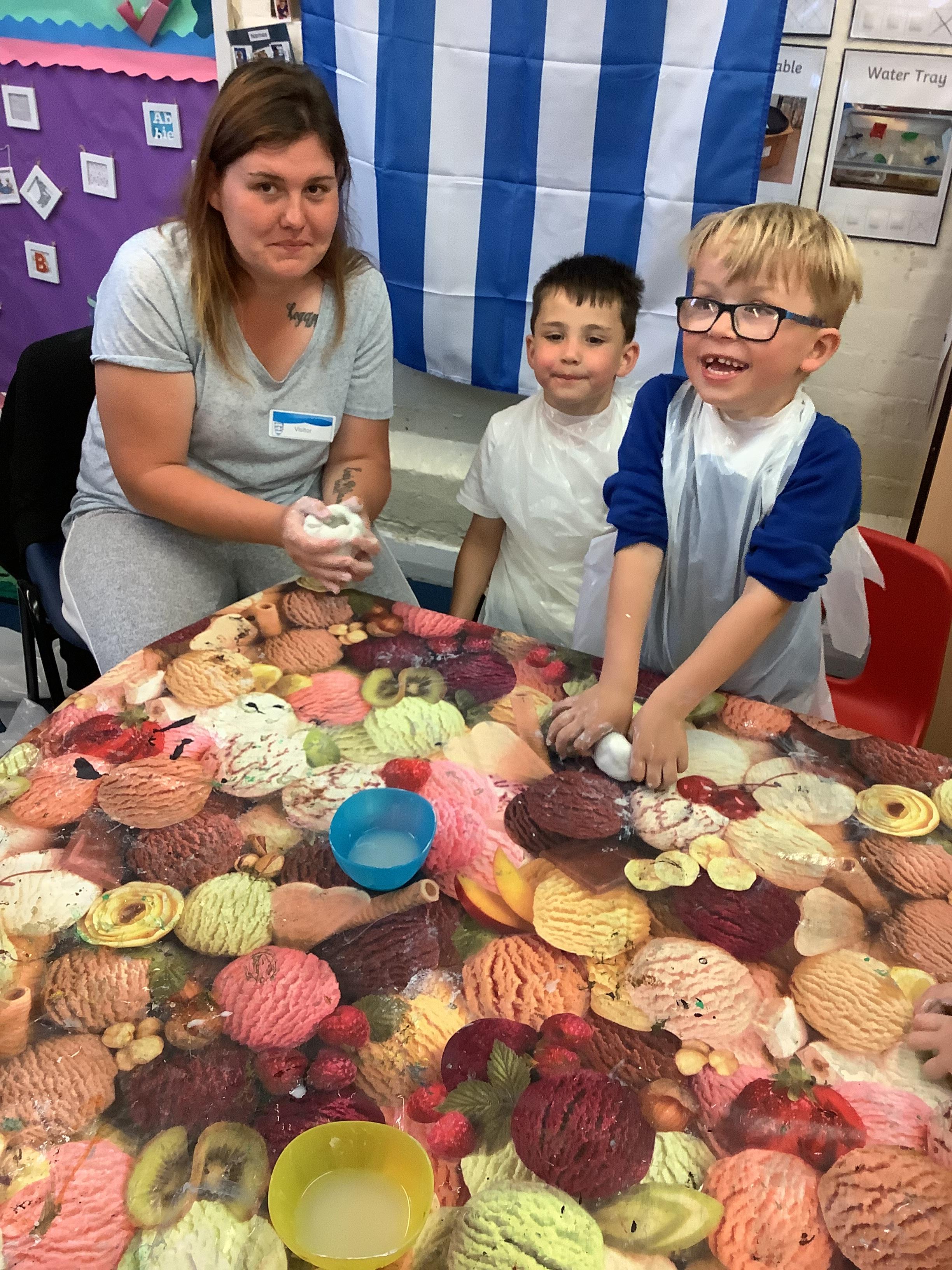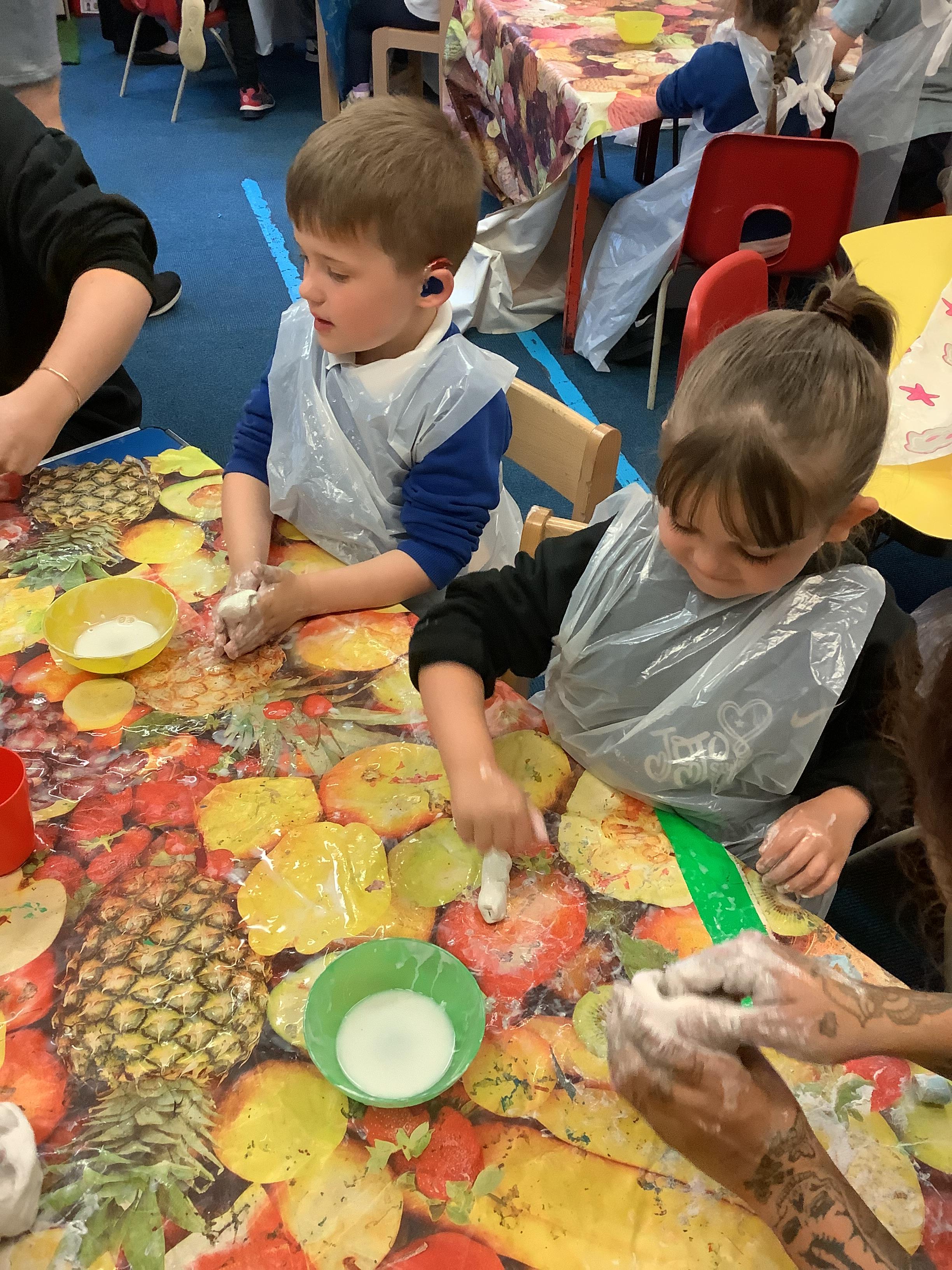 We followed instructions on how to make a chocolate mug cake as part of English experience day. We measured, we mixed, we poured and we added in our favourite sweet treats of chocolate chips, smarties and mini marshmallows. After they had finished cooking in the microwave, we let them cool before eating them. They were delicious!