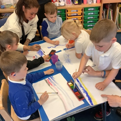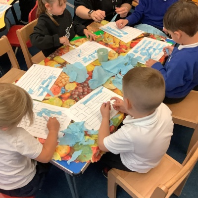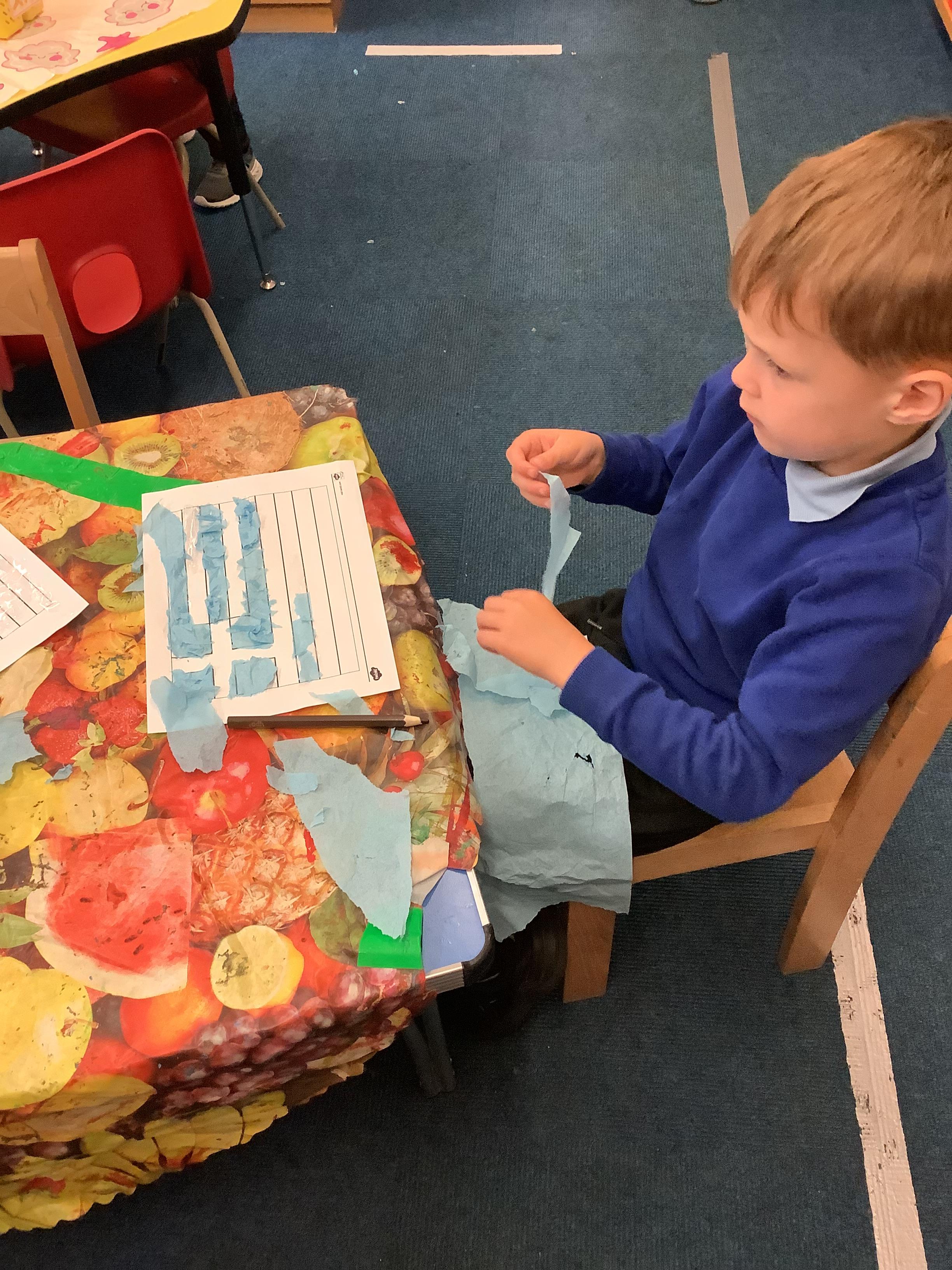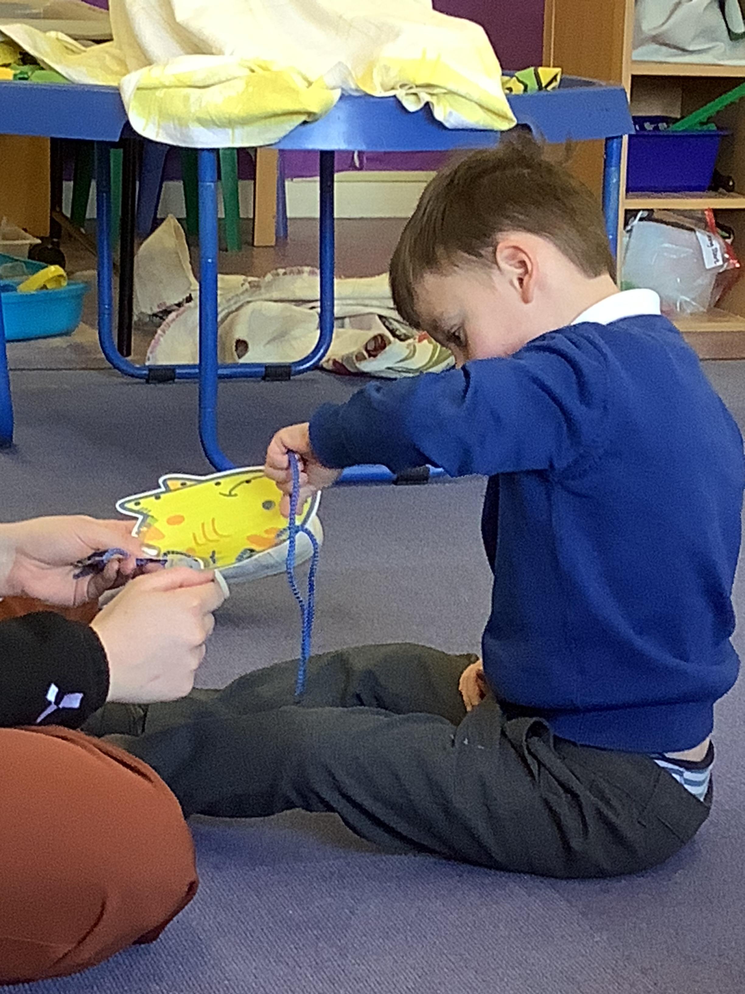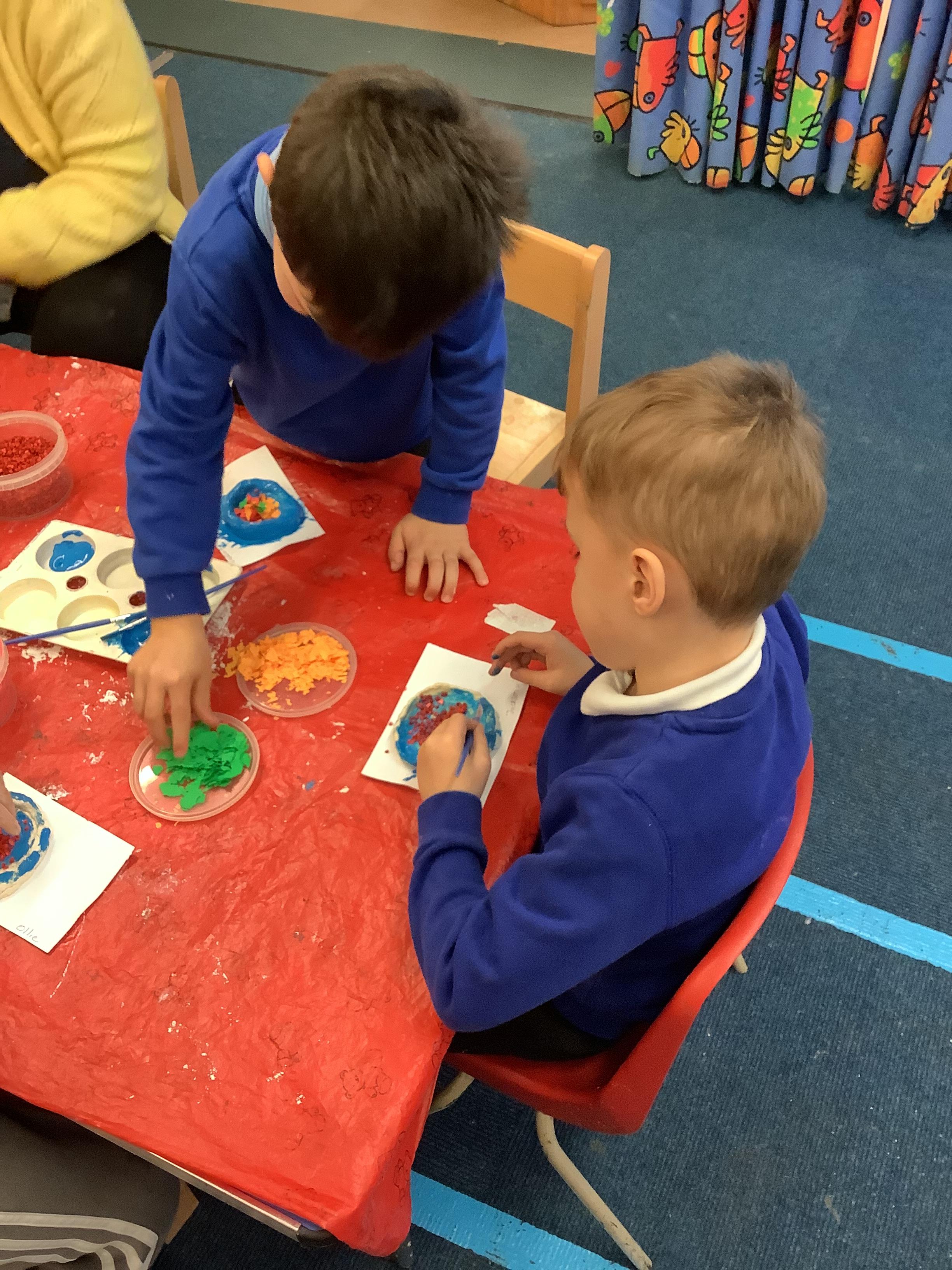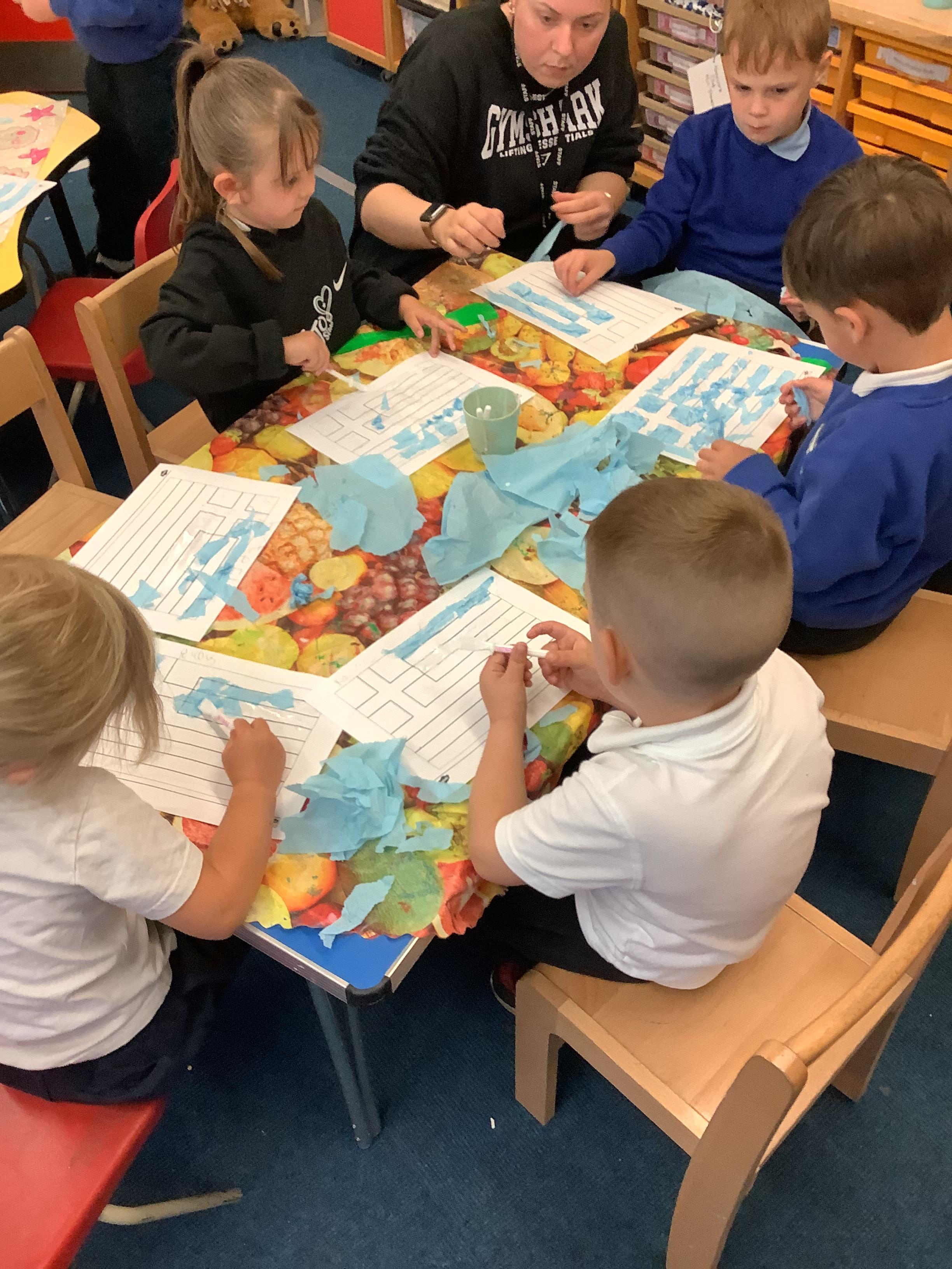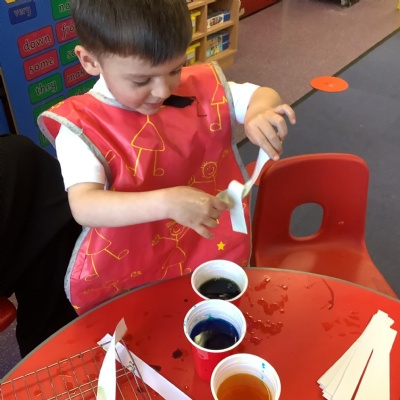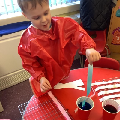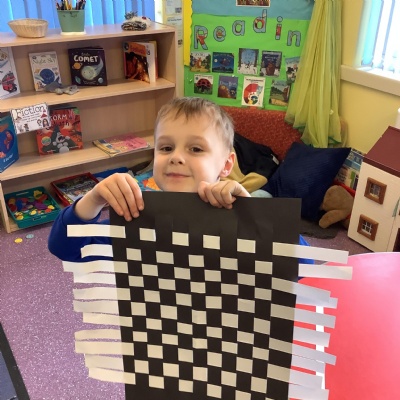 We have been paper weaving during our art lessons. The children enjoyed using the food colouring to dye the paper strip different colours and practiced the weaving method using thread first before practicing with paper.