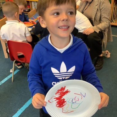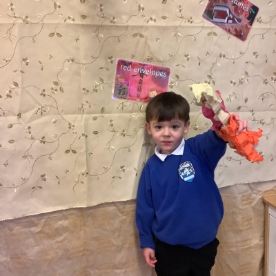 We have been making dragons and lanterns for the Chinese New Year. The Luna New Year animal this year is the Wood Dragon.