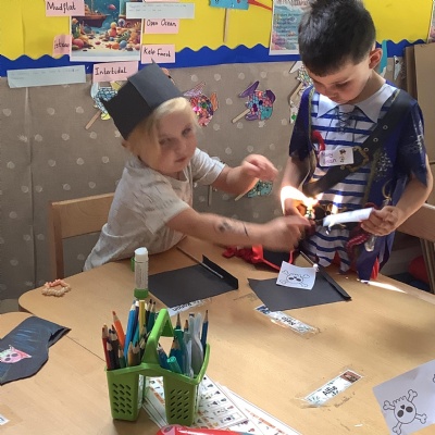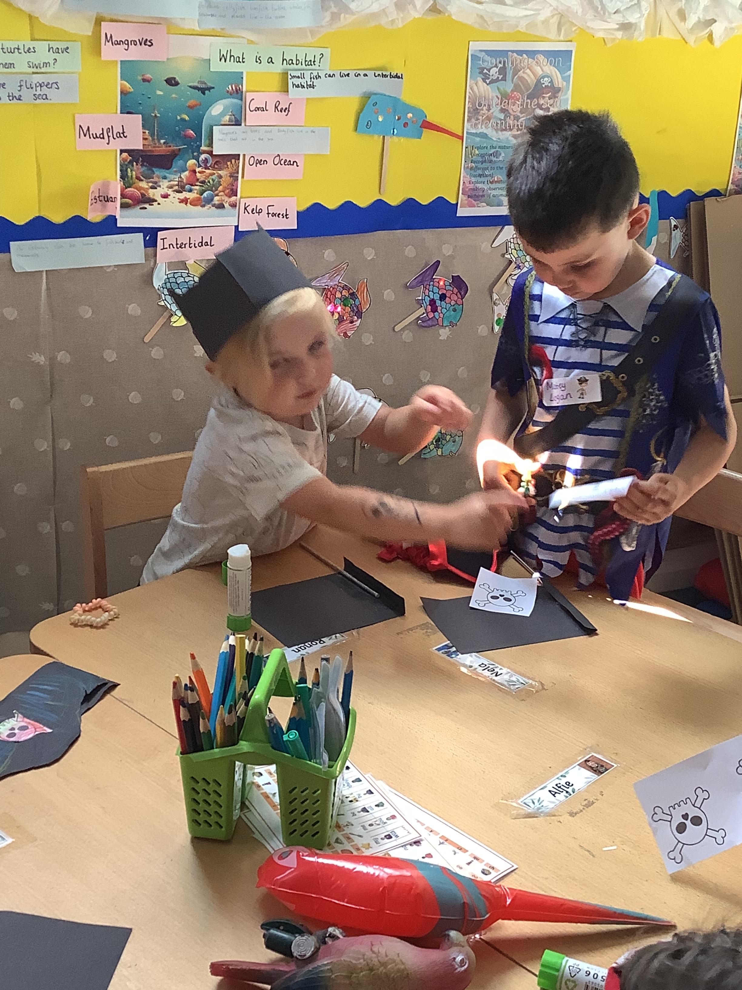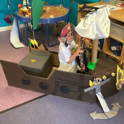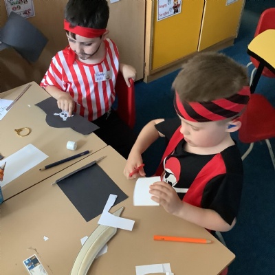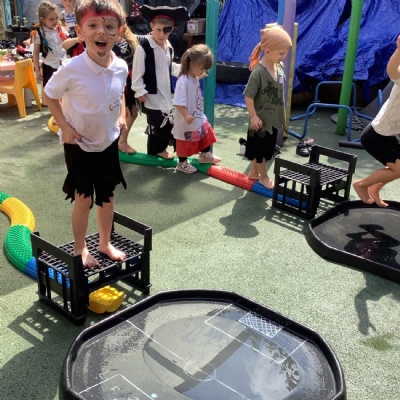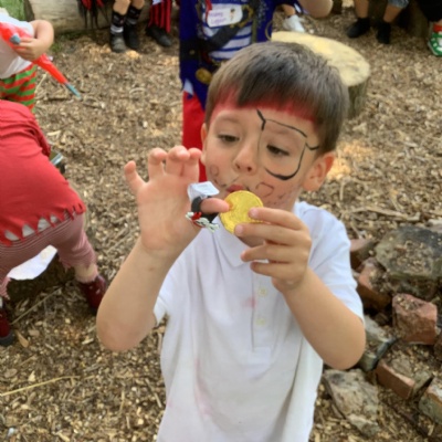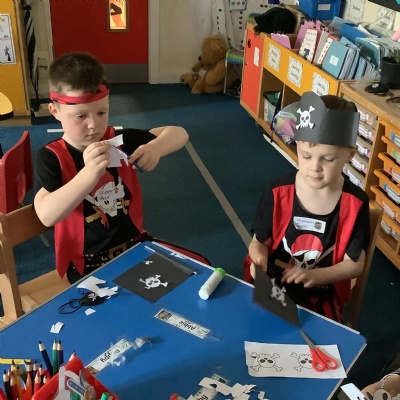 Pirate day! We had so much fun making flags, pirate hats, making pirate ships, singing sea shanties, walking the plank and going on a treasure hunt ��☠️☠️⚓️