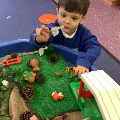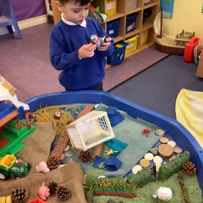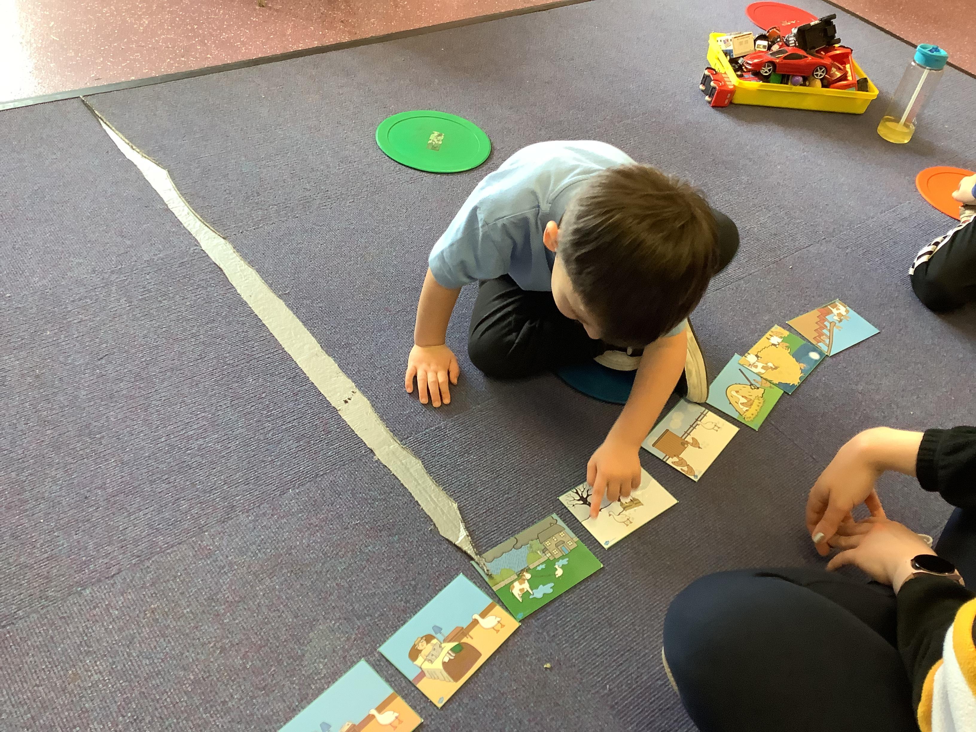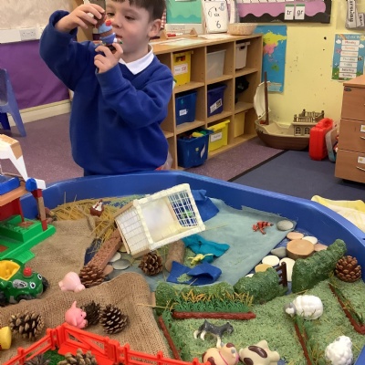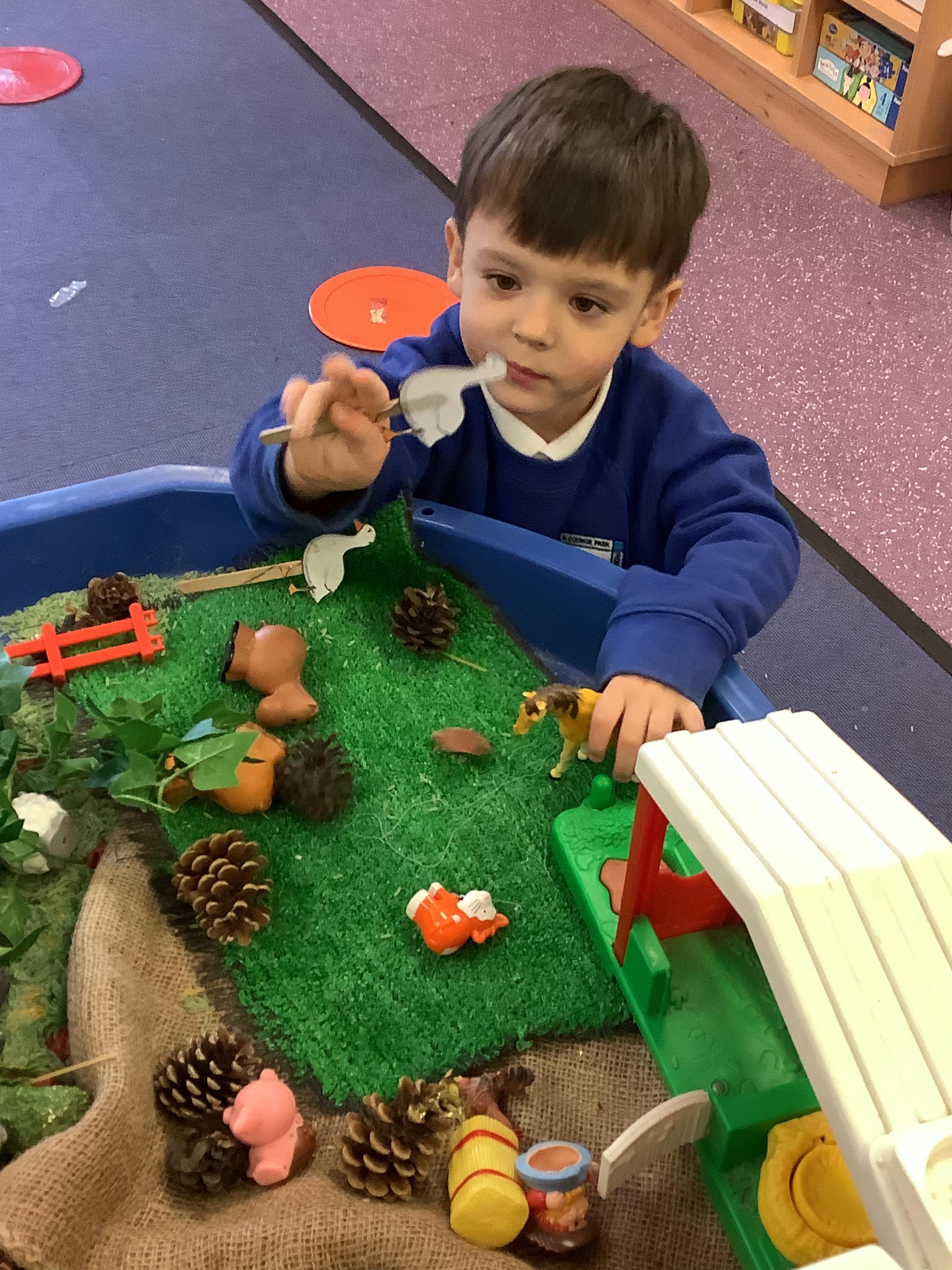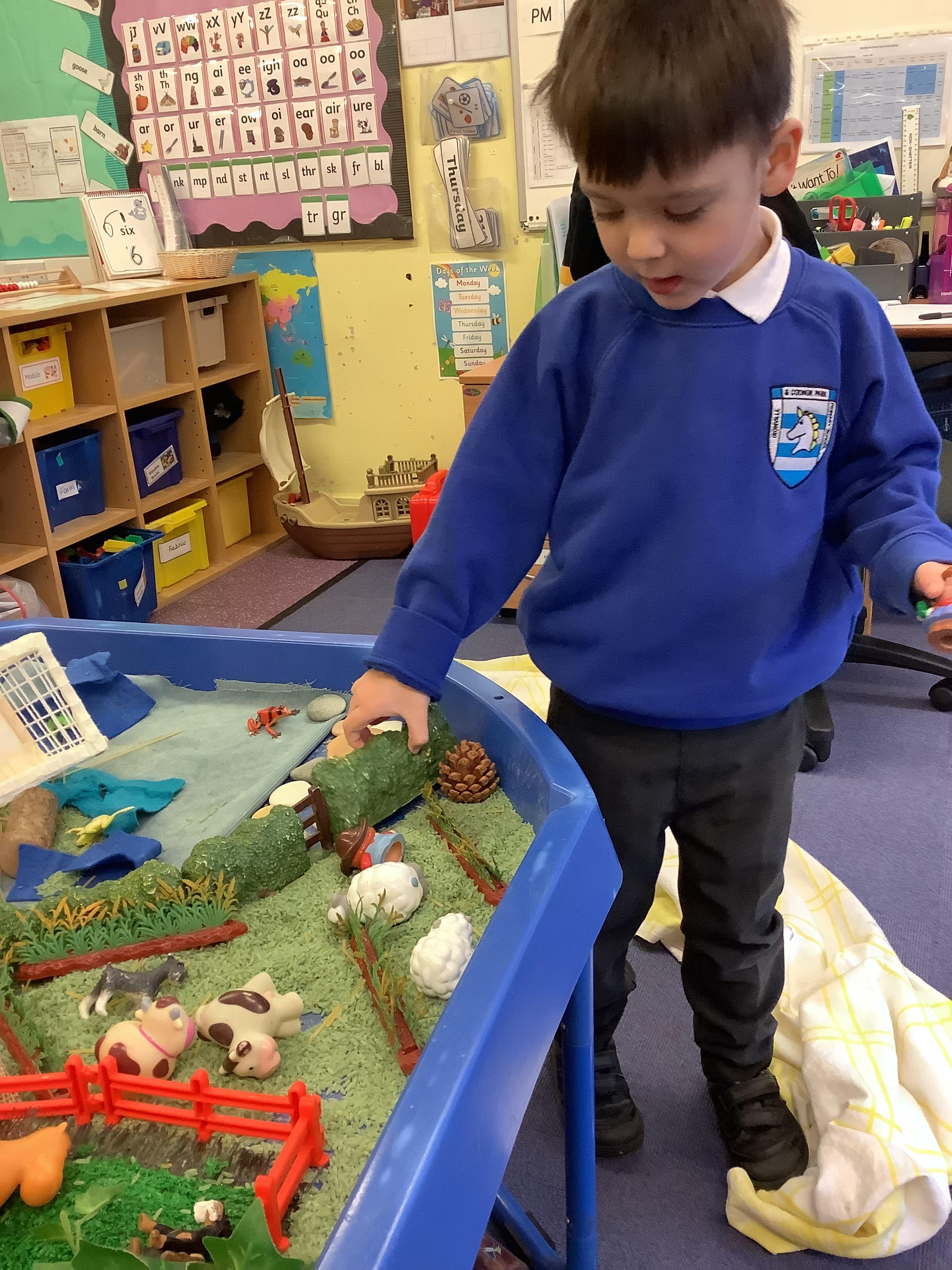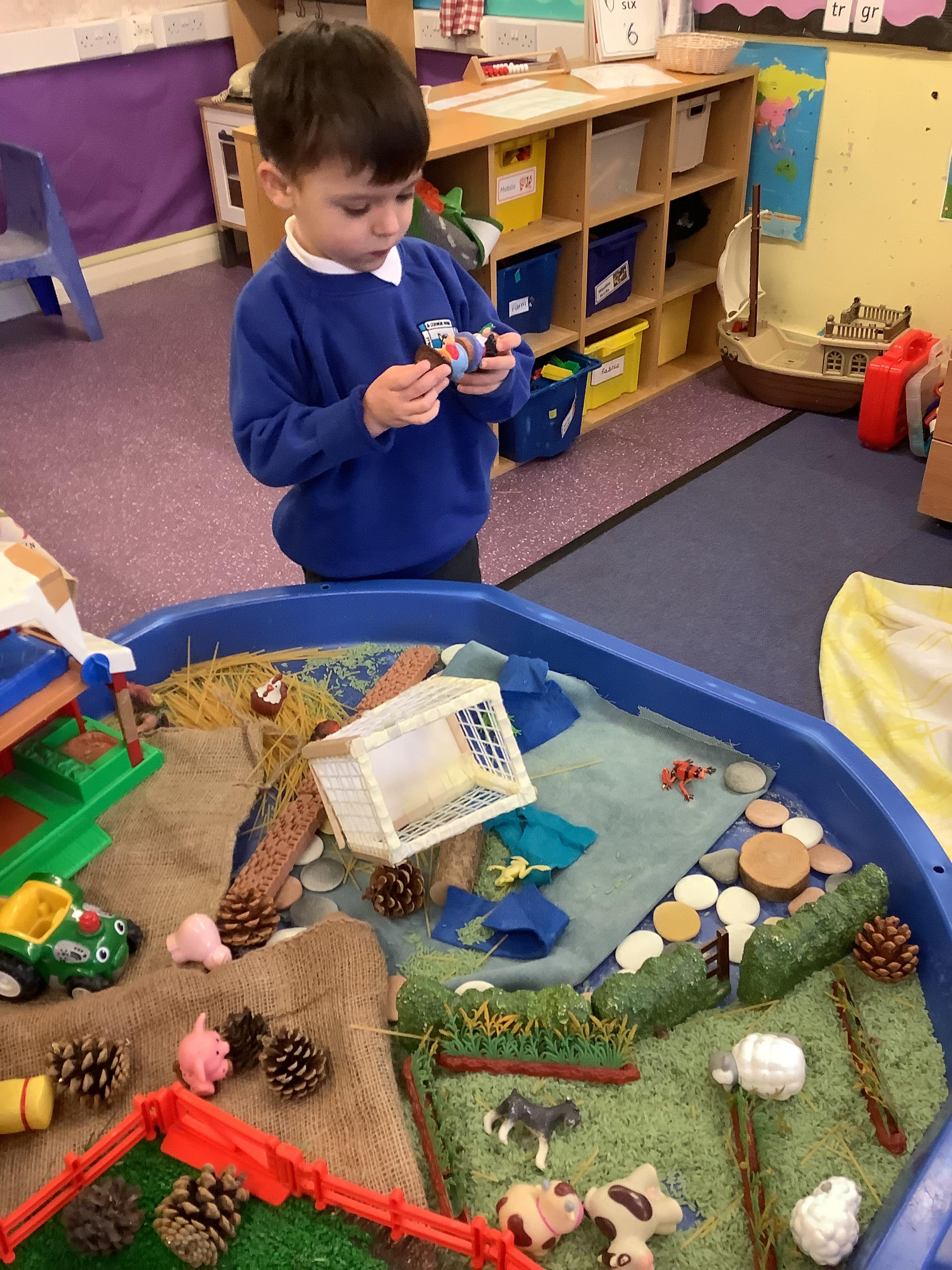 Wow! Farmer Duck has been doing lots of hard work on the farm, whilst the farmer was being very lazy! We have been carrying out the role of both the farmer and the duck in our role play area and we have used our sequence cards to retell the story.