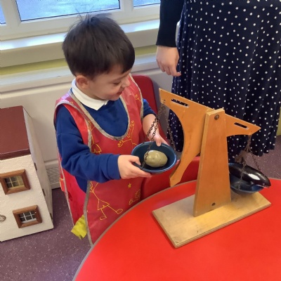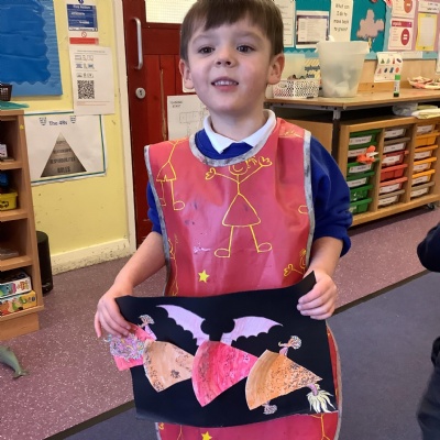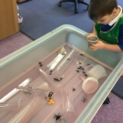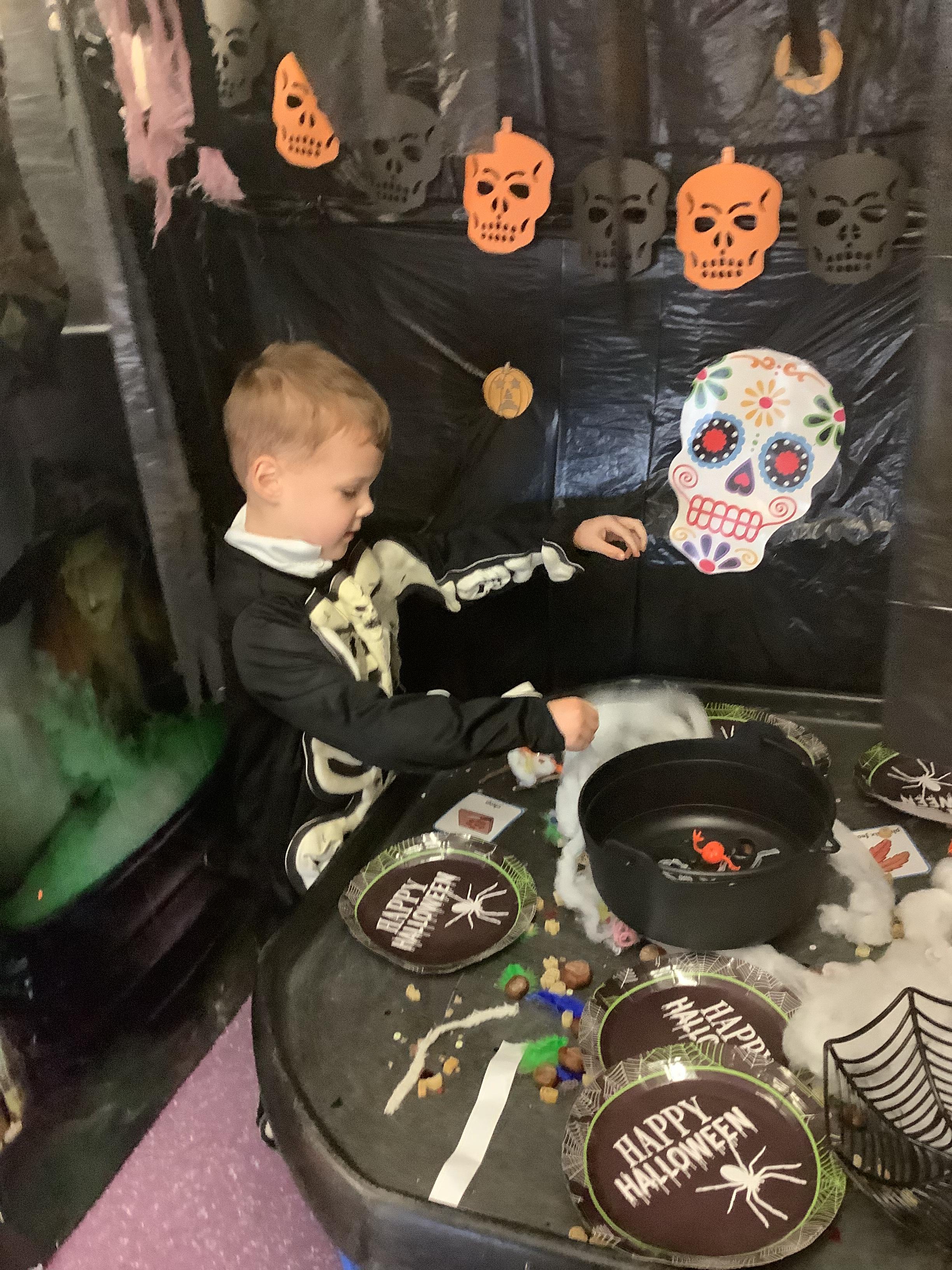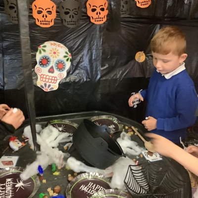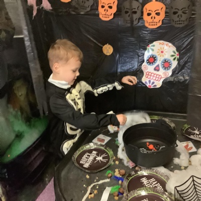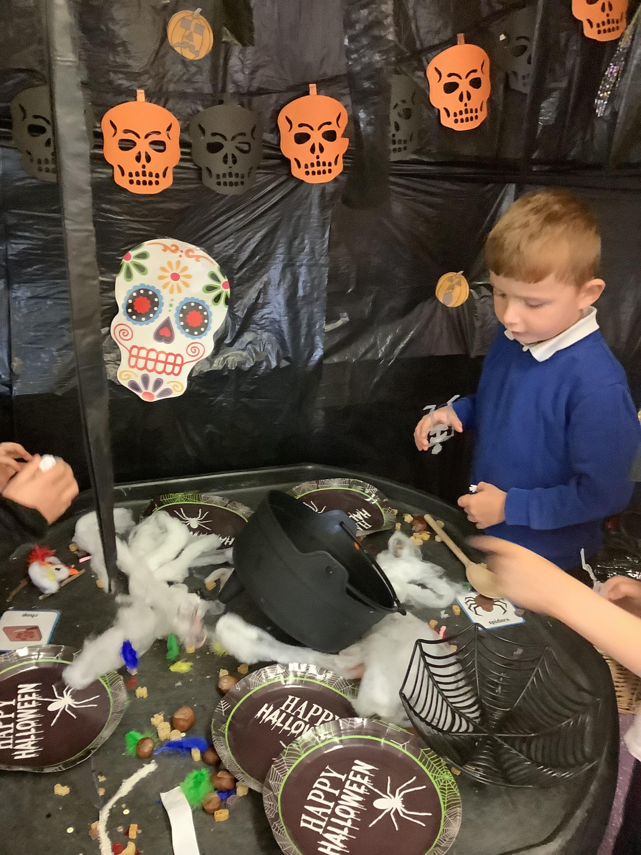 In Drawing club we are focusing on the story 'Room on the Broom' so we have turned our role play area into a witches kitchen where the witch can create new potions and spells.