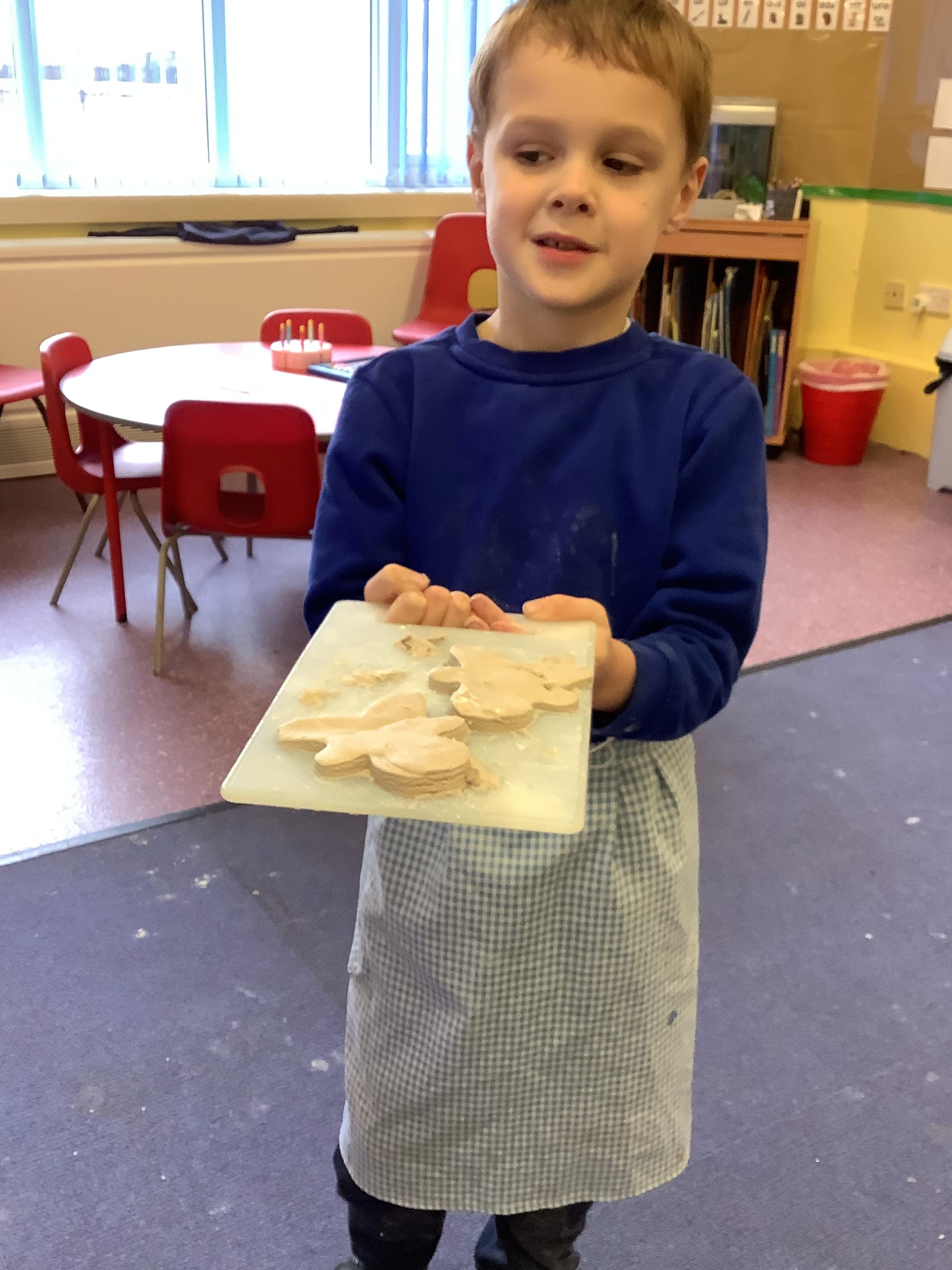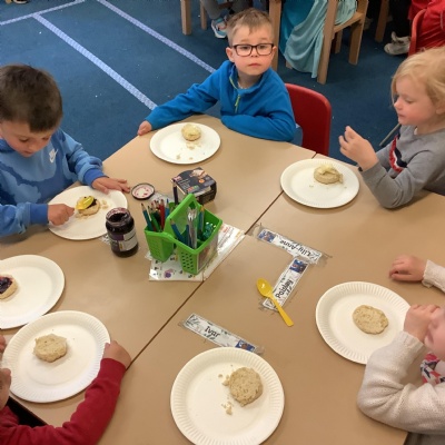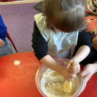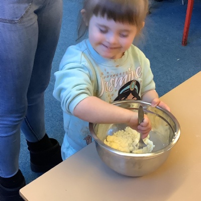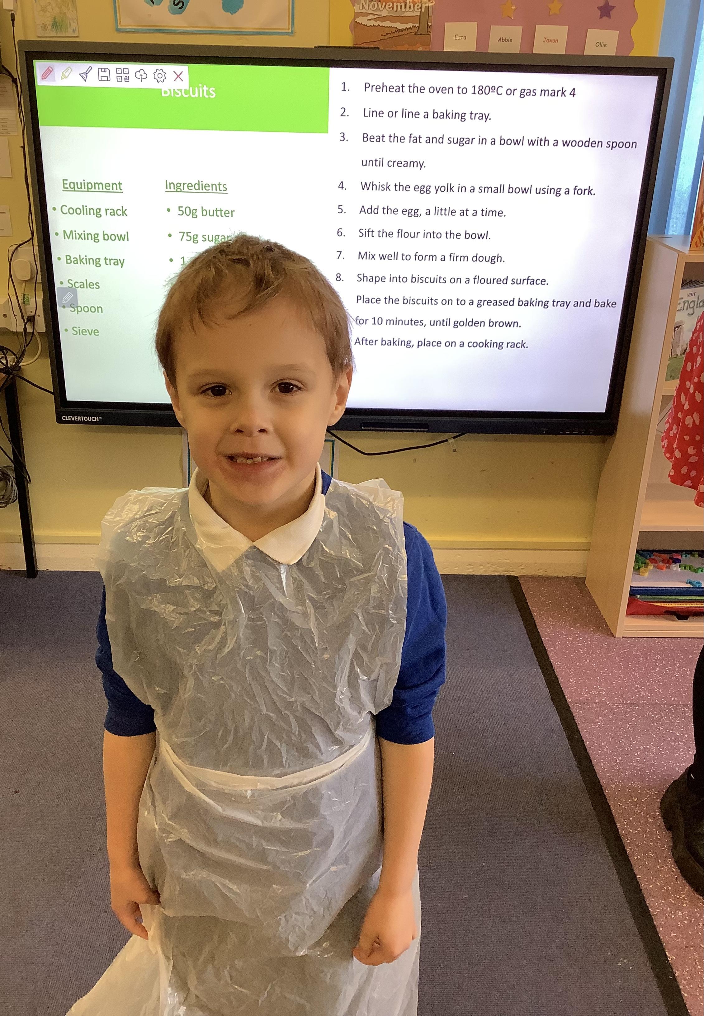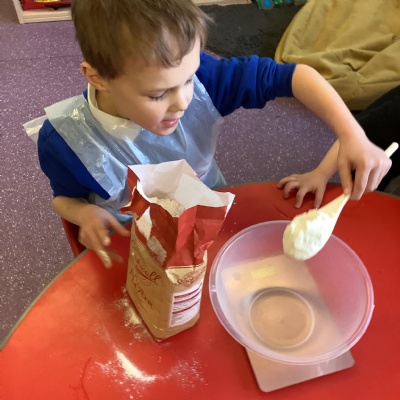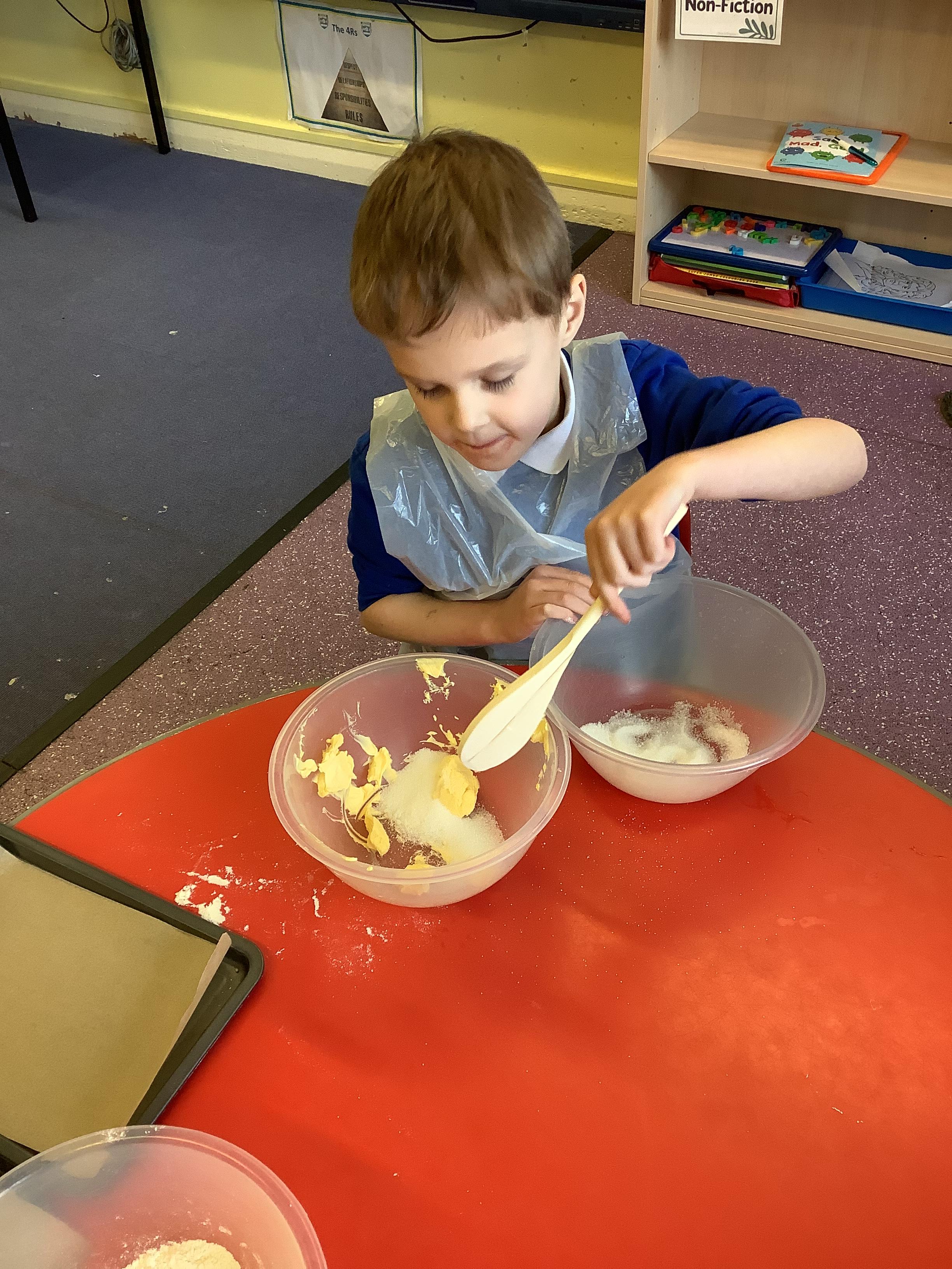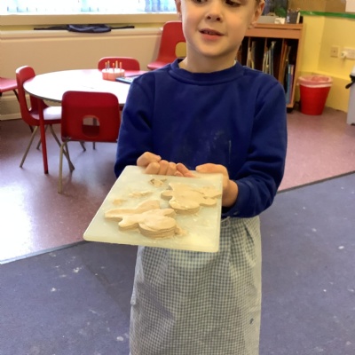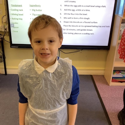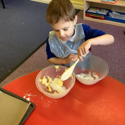 This term we have learnt the skills that we need to bake biscuits. We looked at health and safety and good hygiene when cooking. It was great fun practicing our skills in the role play area before preparing our equipment and following a recipe to make our delicious biscuits. They were very tasty and we rated them 10/10 for their taste and texture!