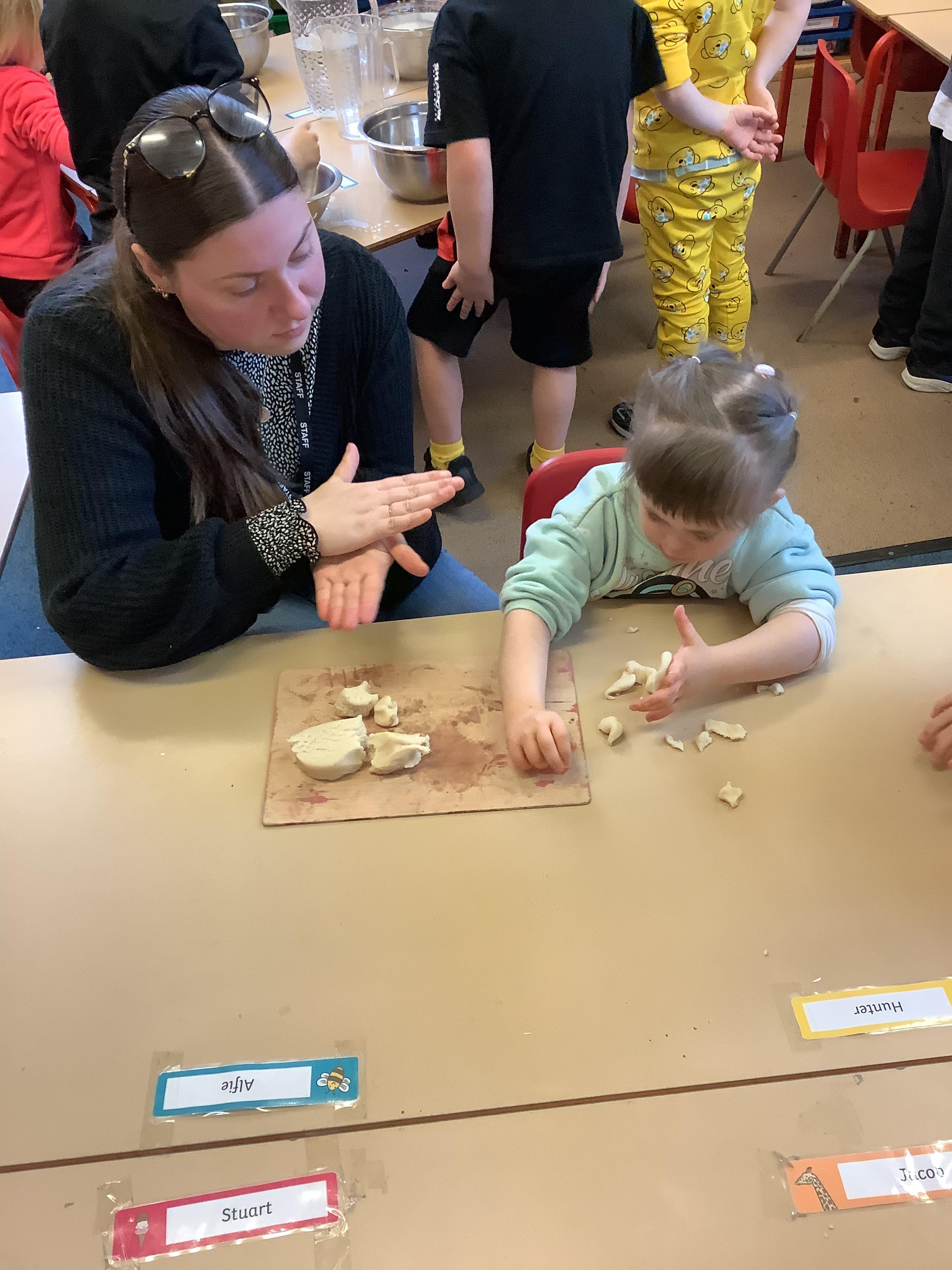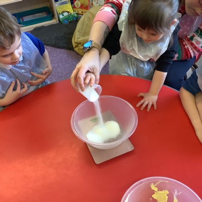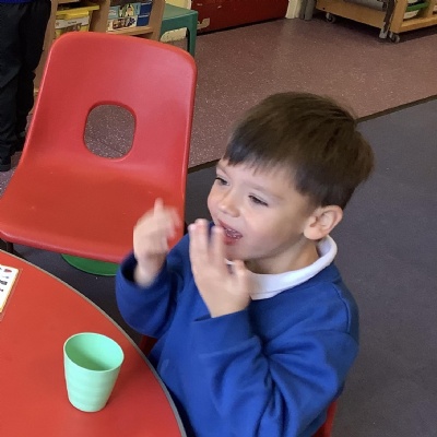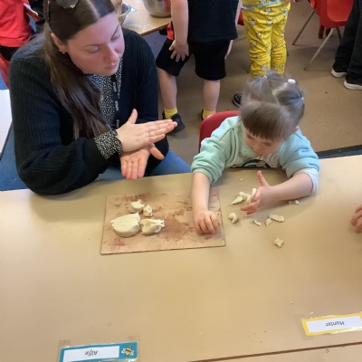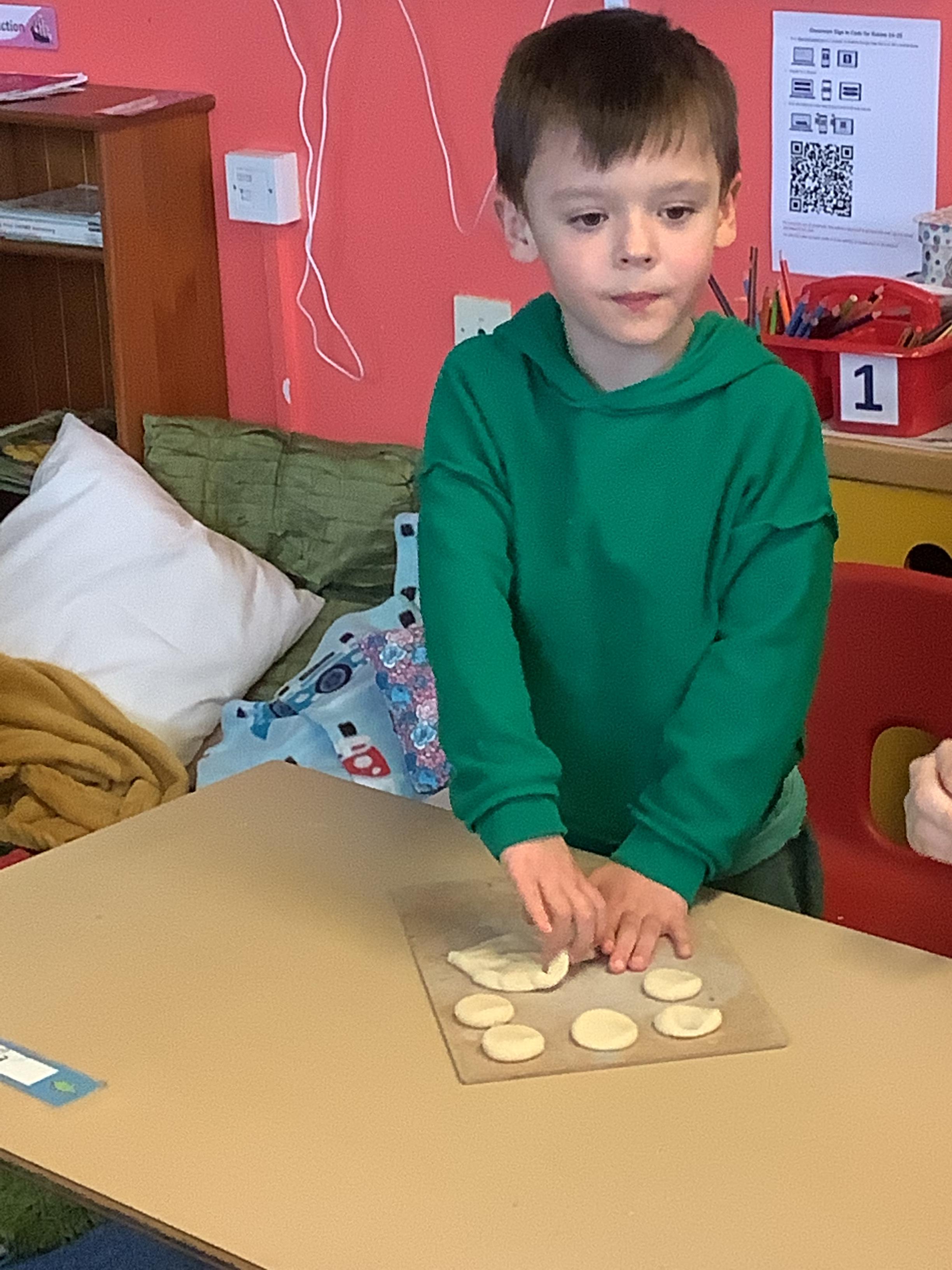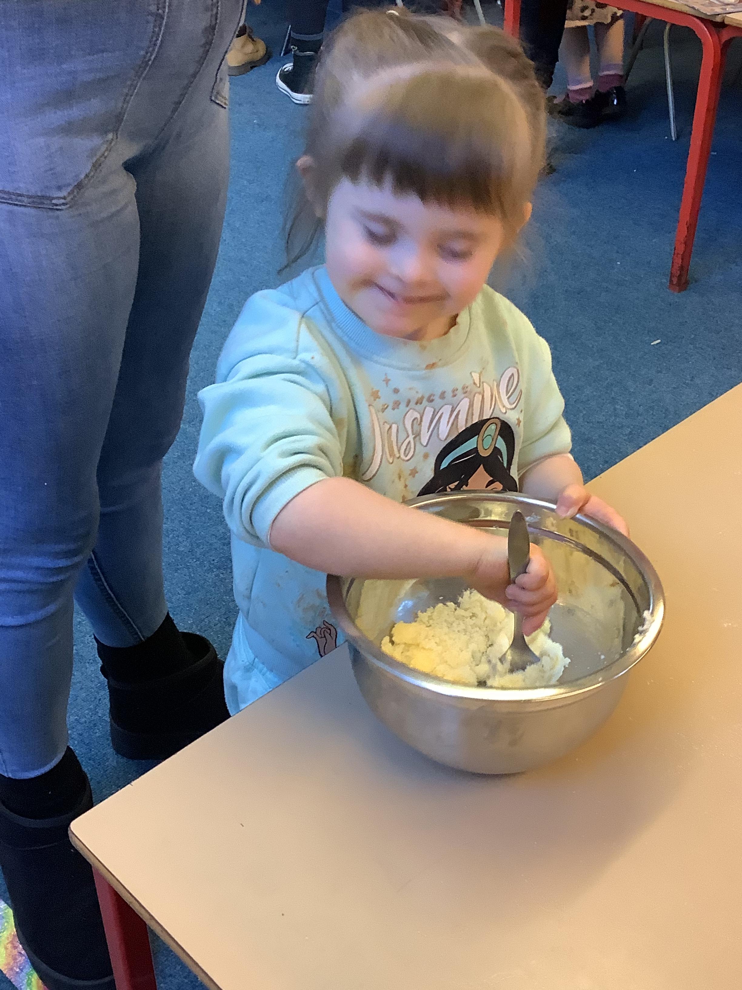 This term we have learnt the skills that we need to bake biscuits. We looked at health and safety and good hygiene when cooking. It was great fun practicing our skills in the role play area before preparing our equipment and following a recipe to make our delicious biscuits. They were very tasty and we rated them 10/10 for their taste and texture!