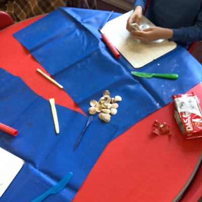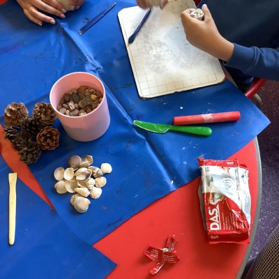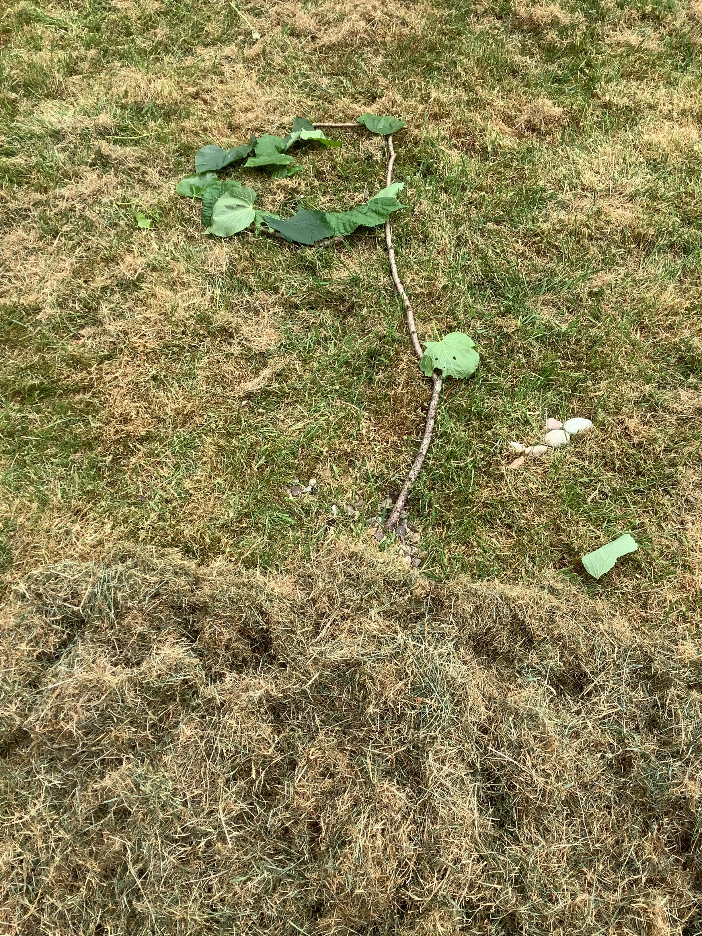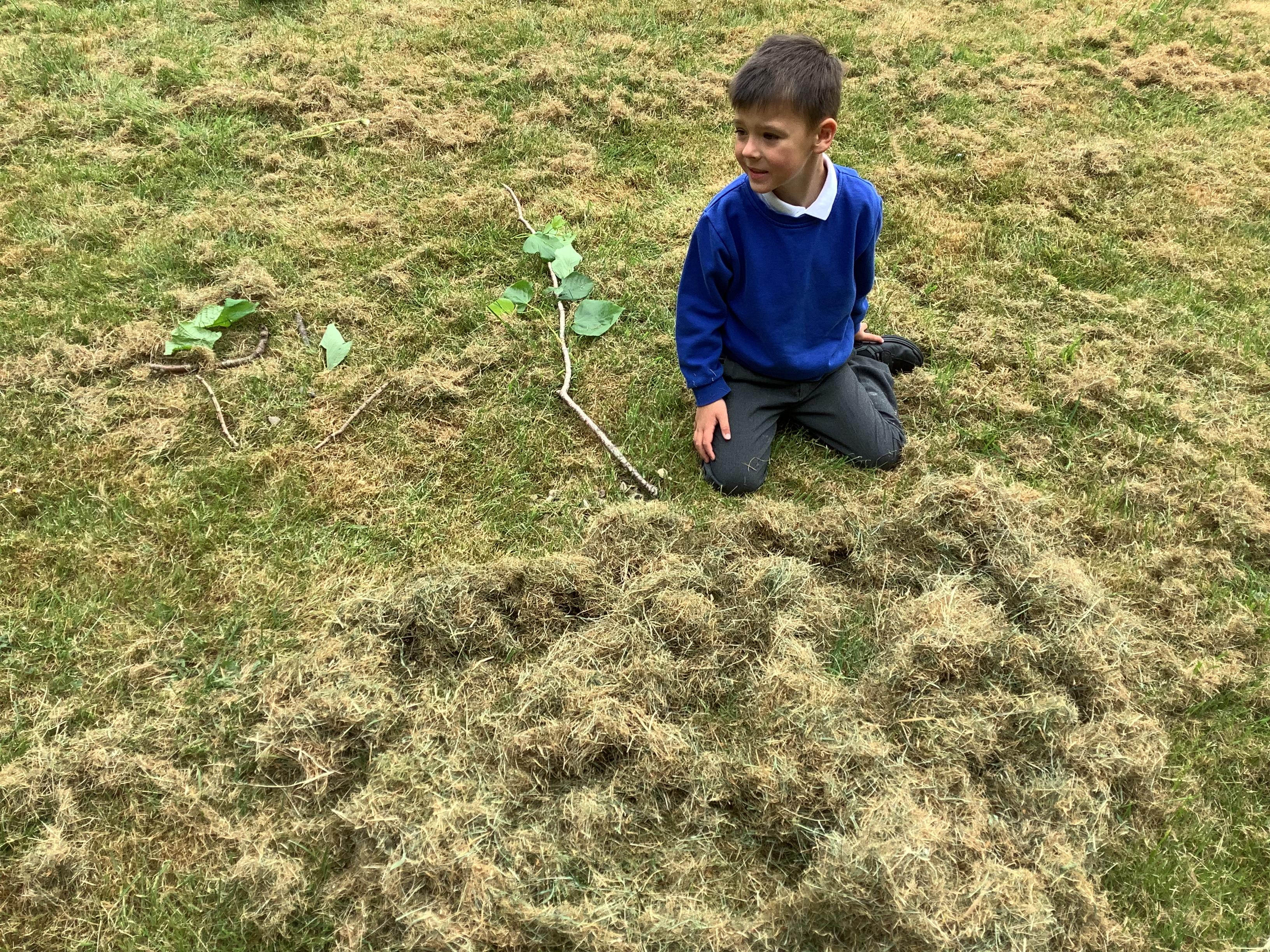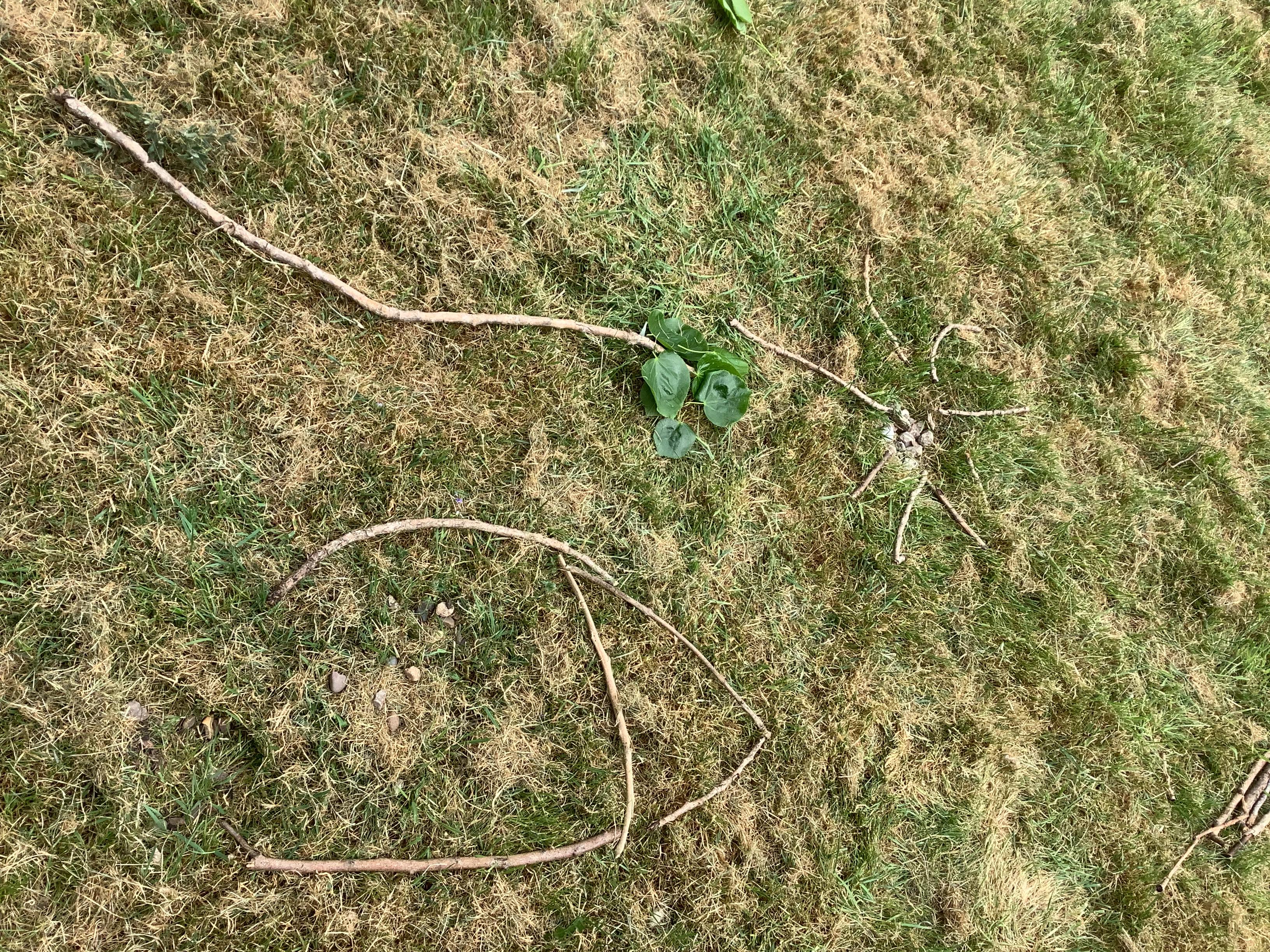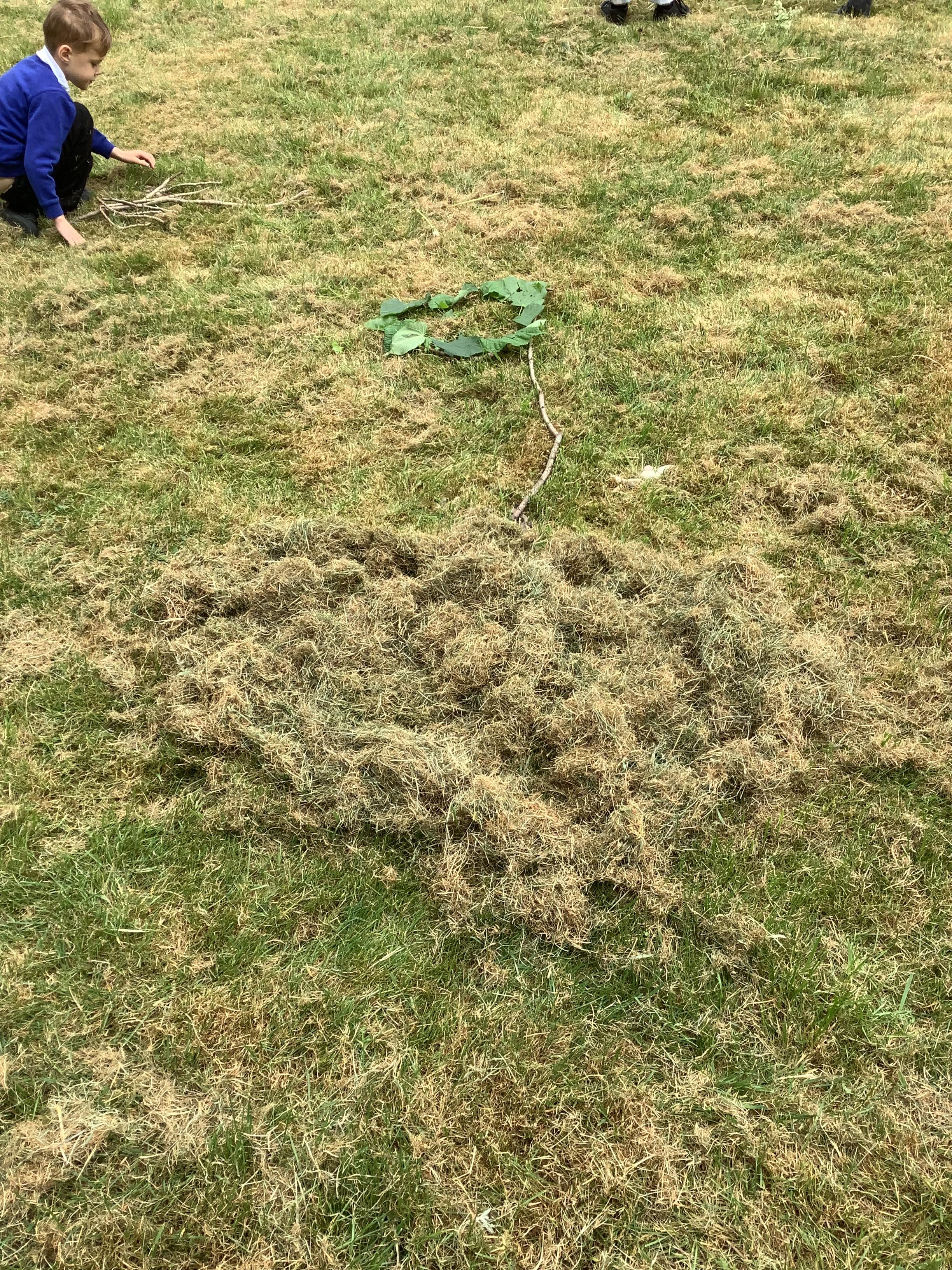 We used natural resources such as grass, sticks, stones, shells and leaves to create sculptures.