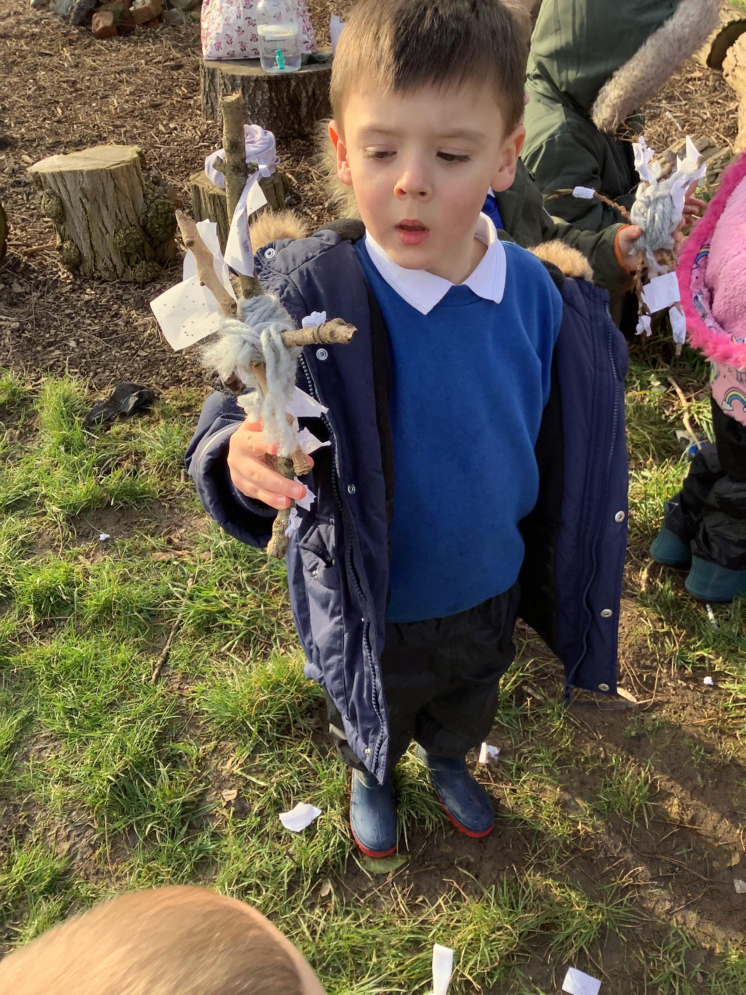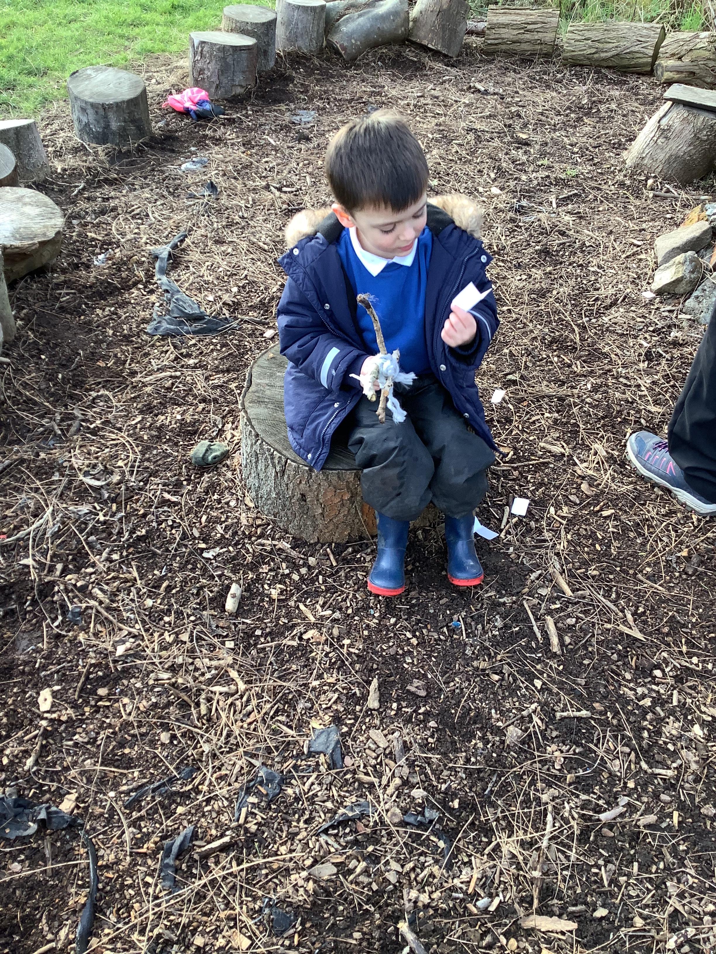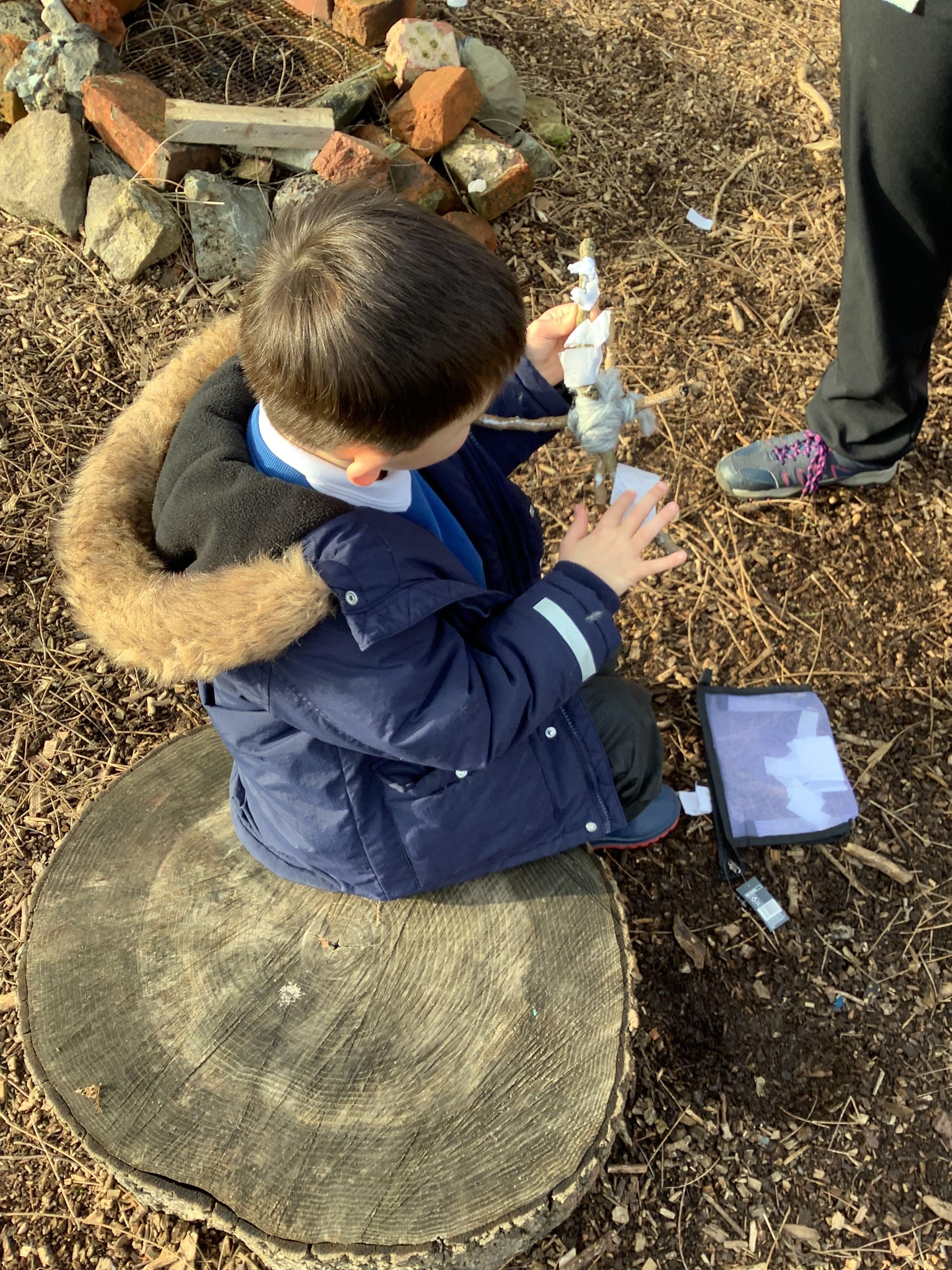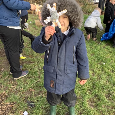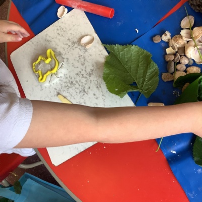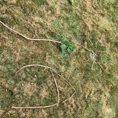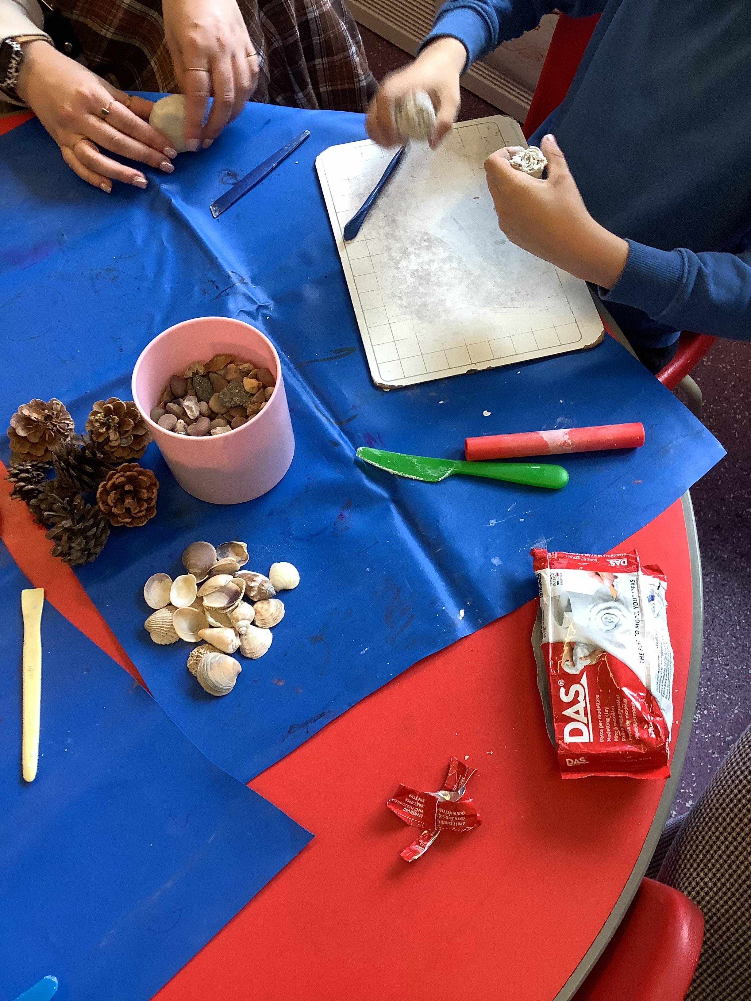 We used natural resources such as grass, sticks, stones, shells and leaves to create sculptures.