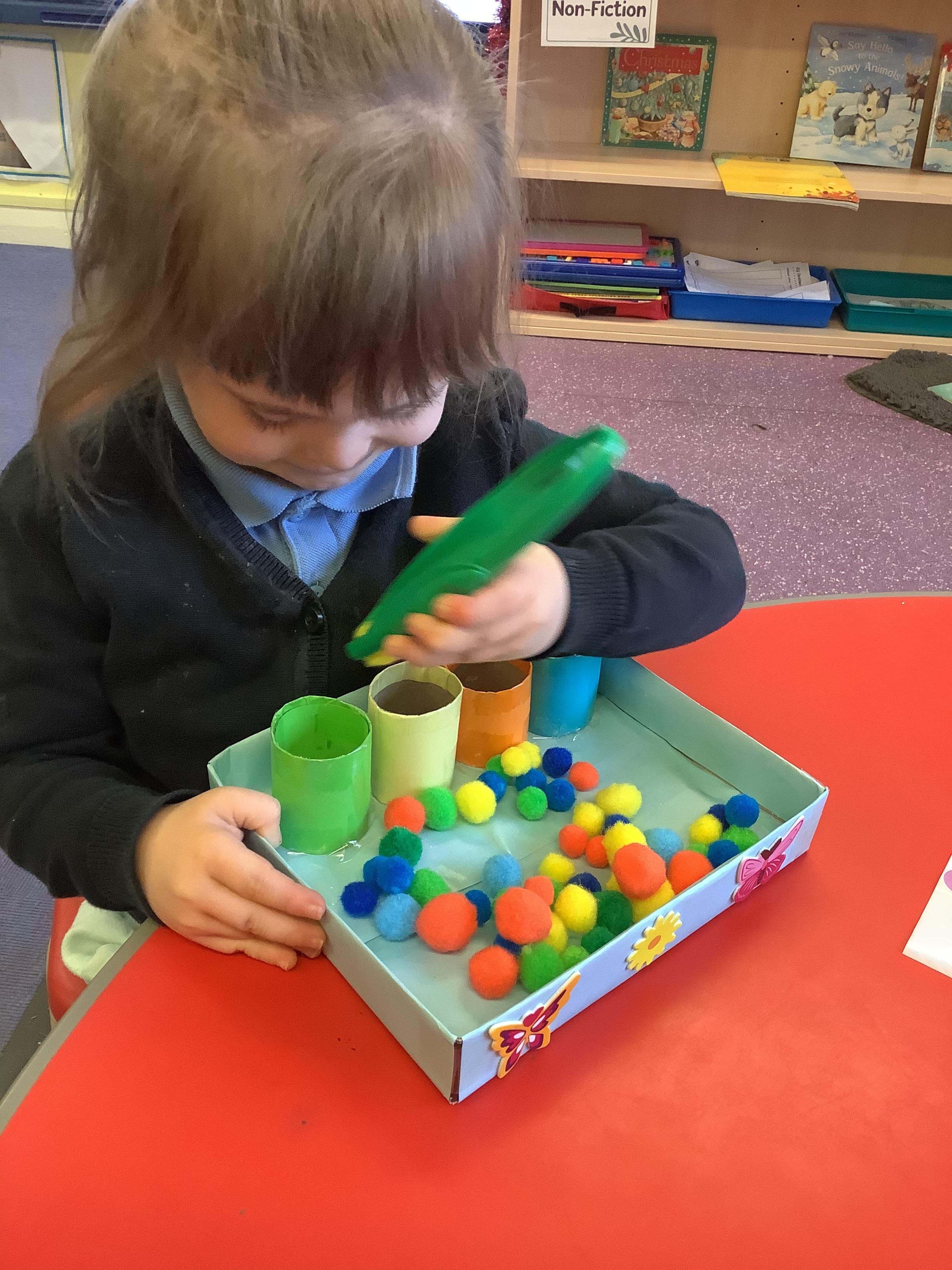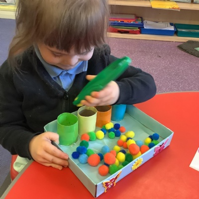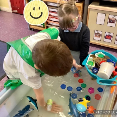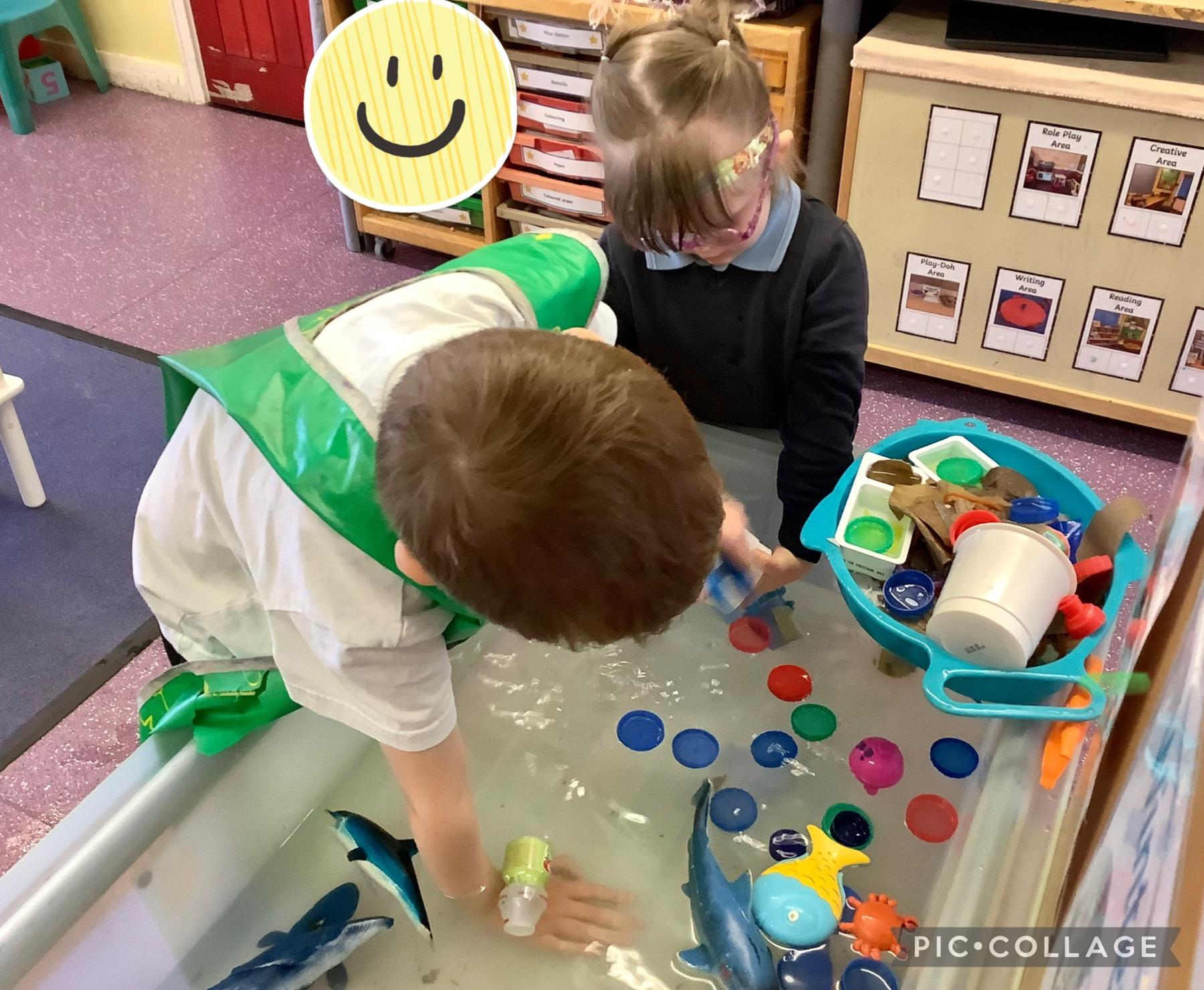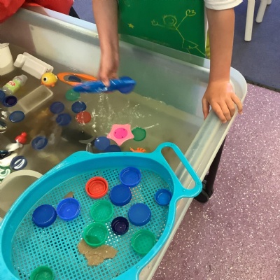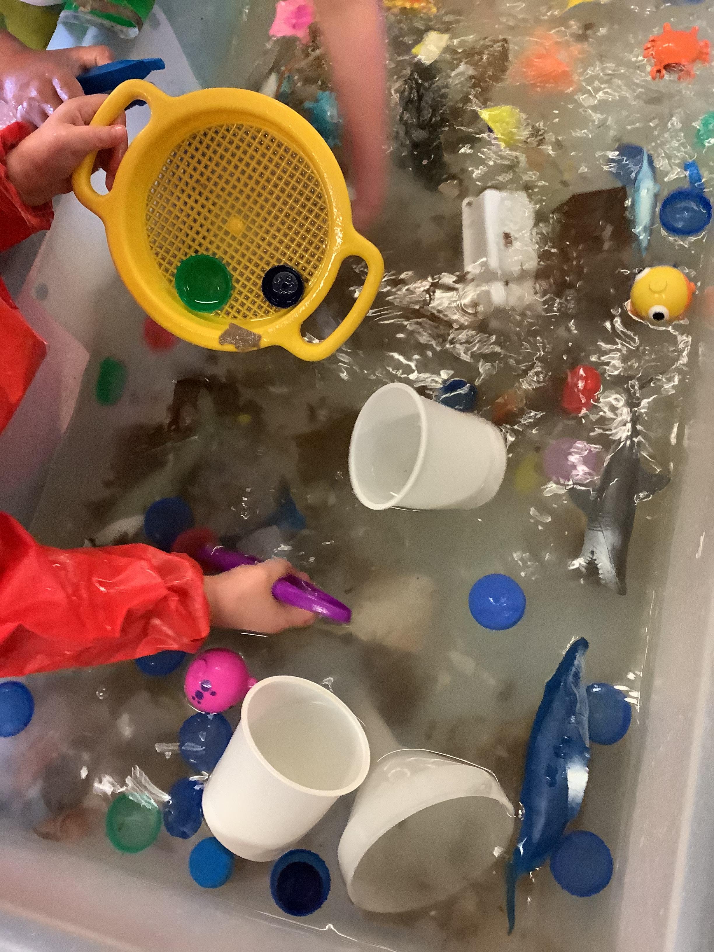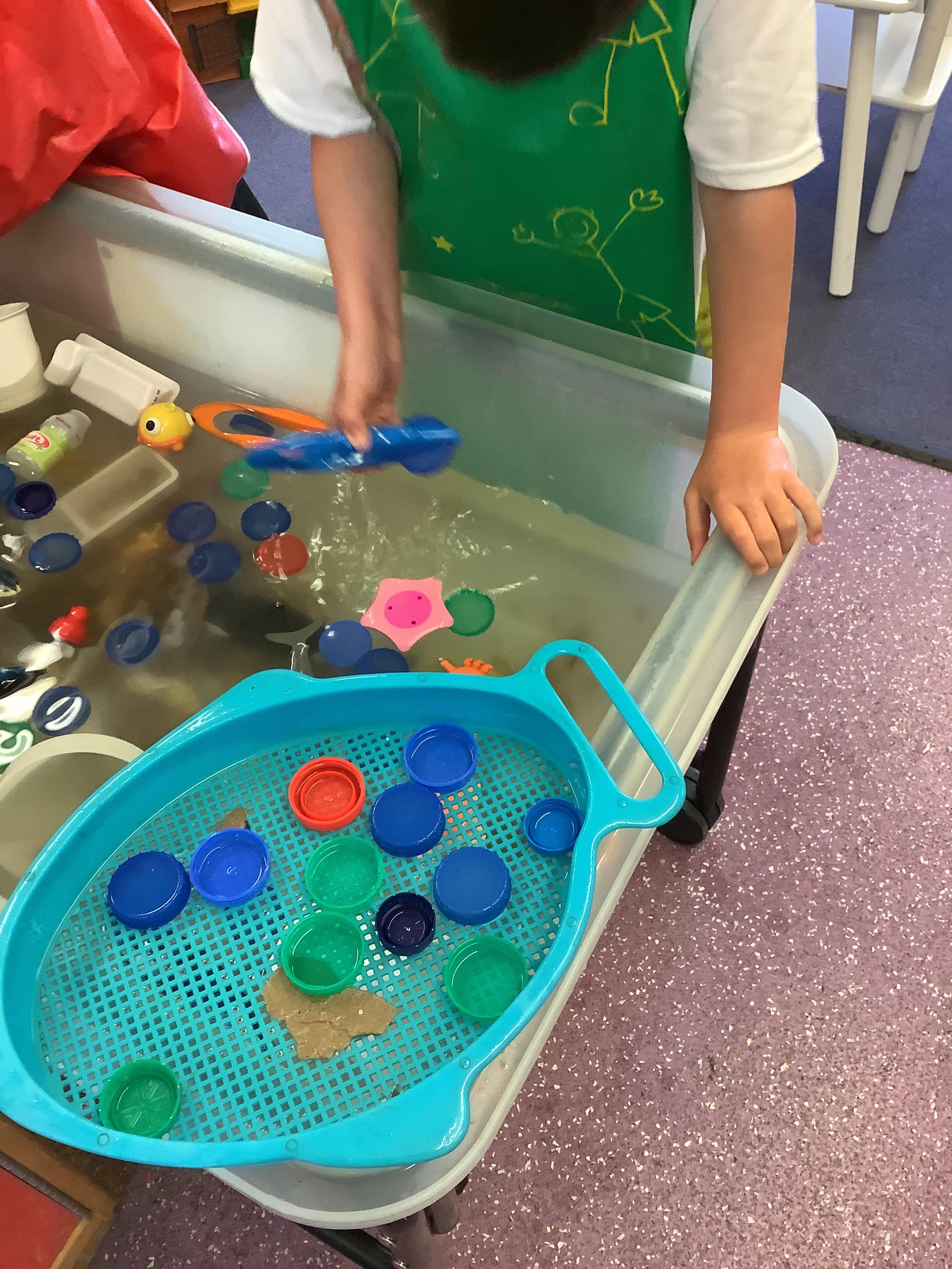 We discussed what we could do as humans to help save the animals and plant life in our oceans and we showed this by removing the litter from the water using pincer grips, which also helps build our hand-eye coordination.