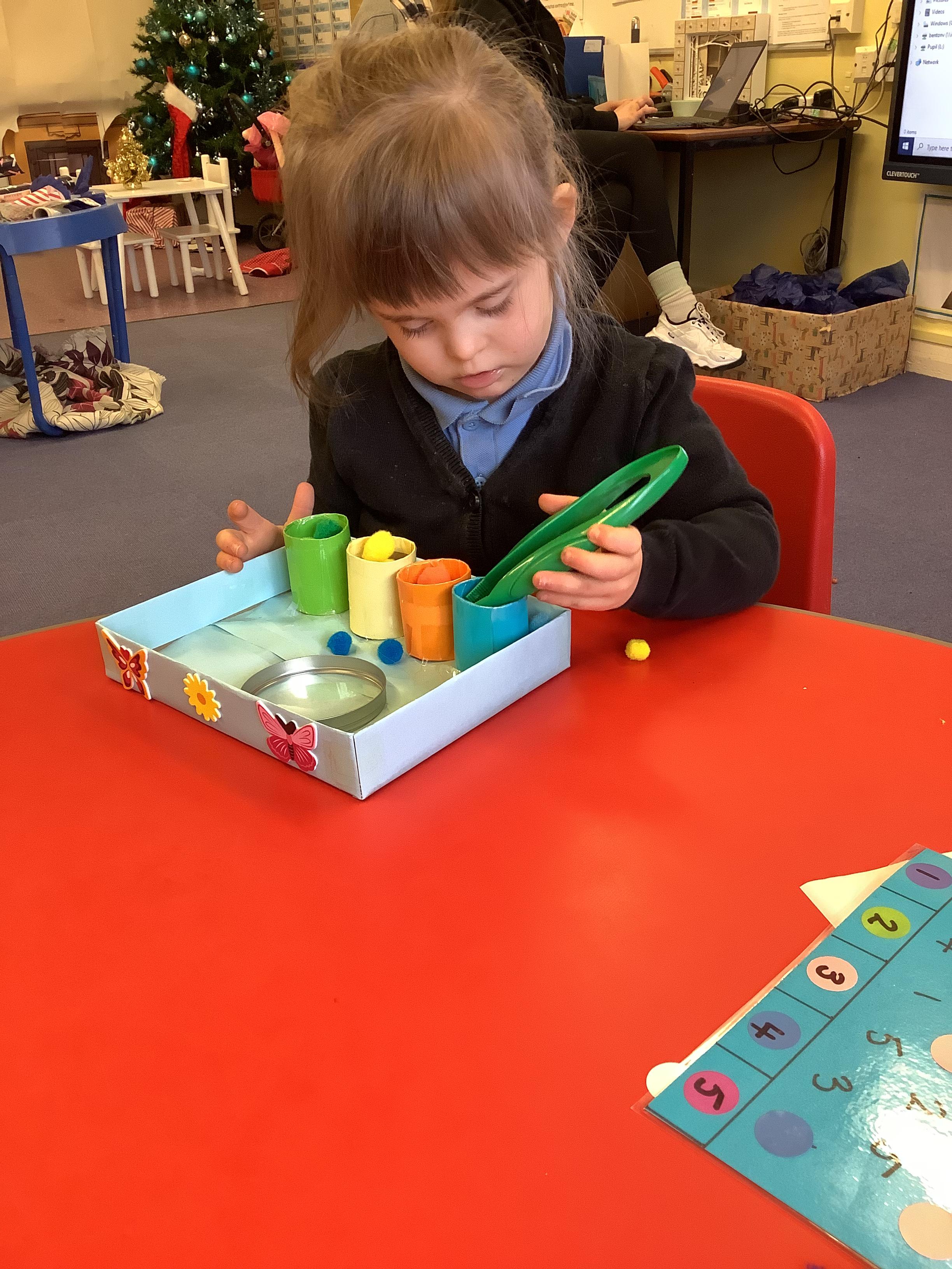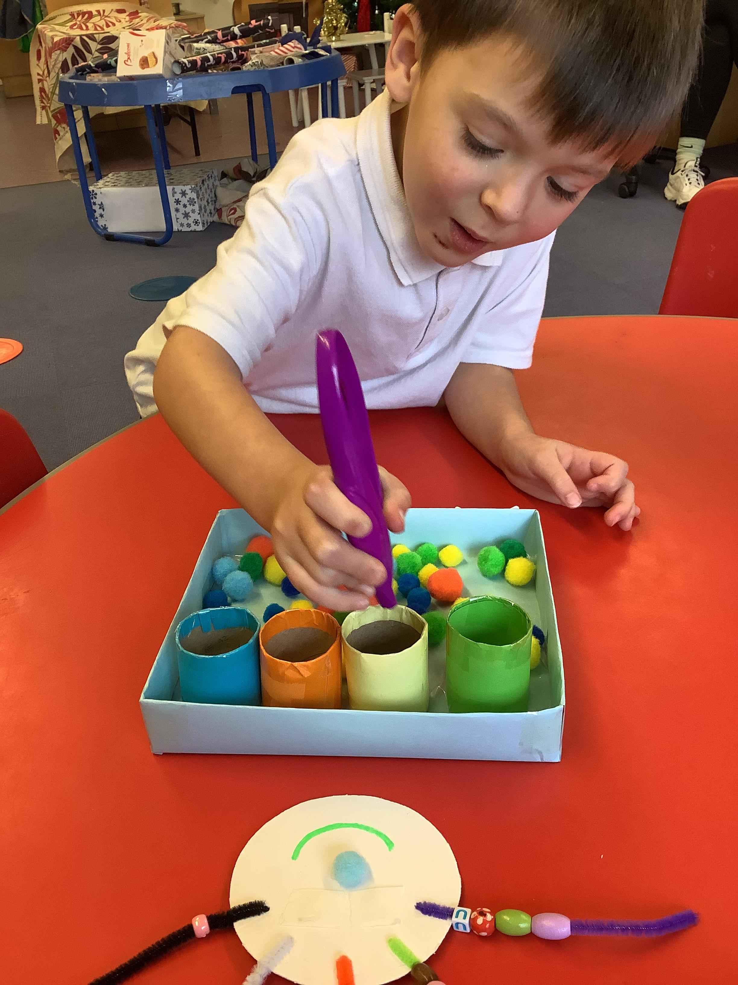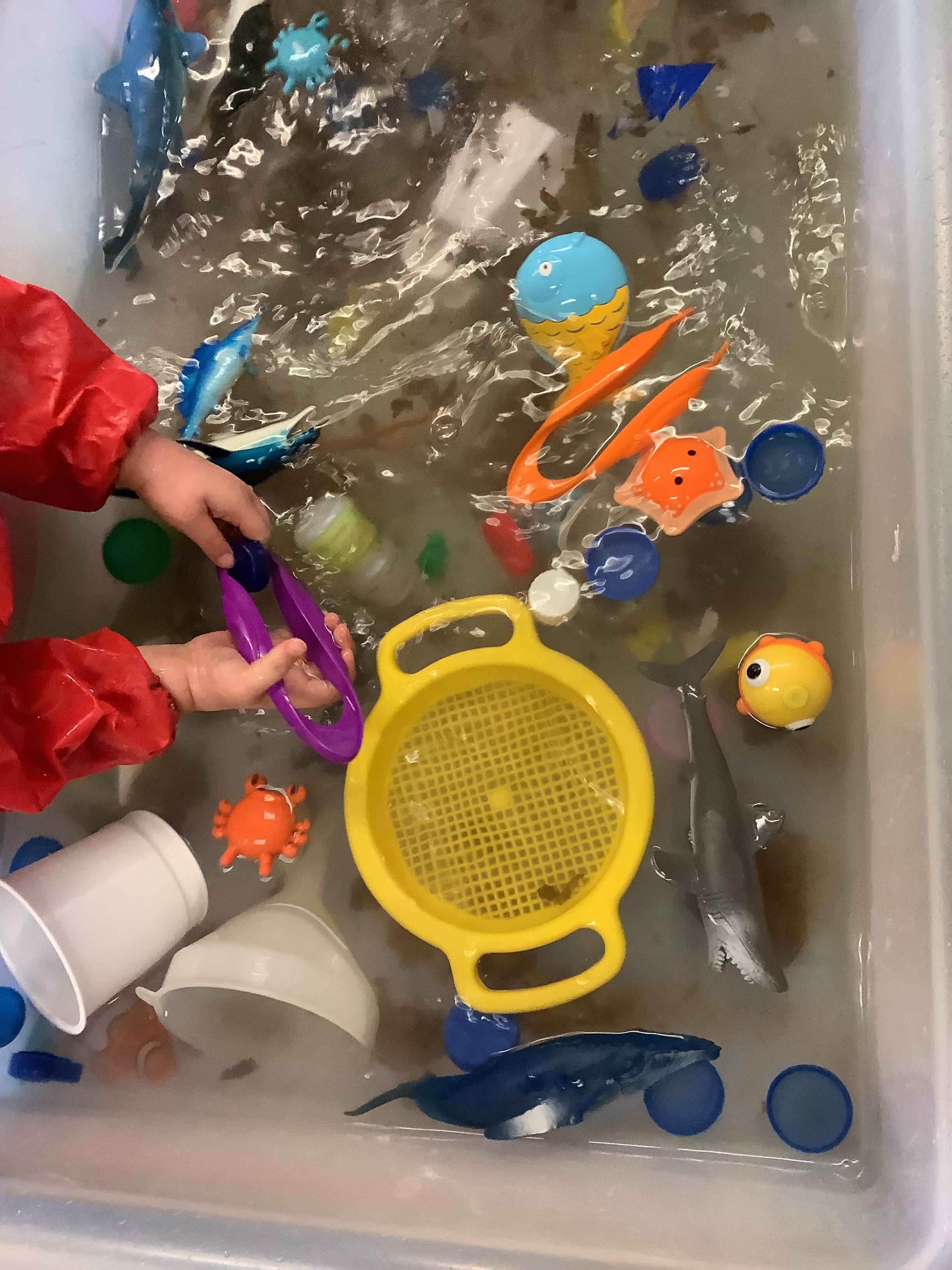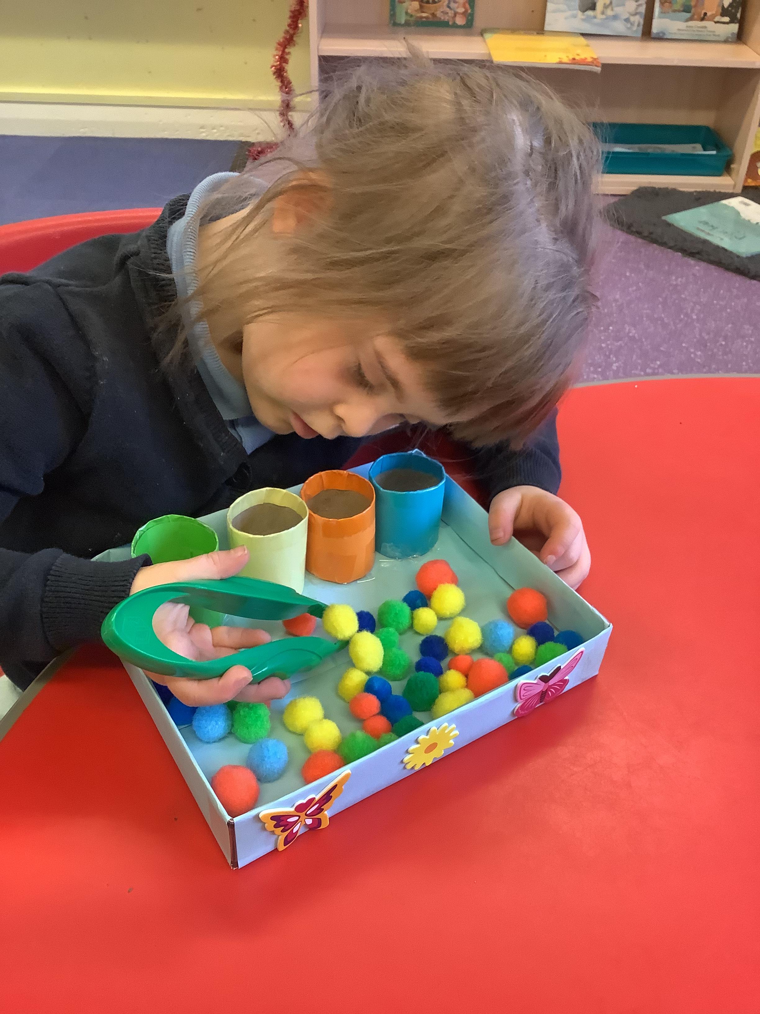We discussed what we could do as humans to help save the animals and plant life in our oceans and we showed this by removing the litter from the water using pincer grips, which also helps build our hand-eye coordination.