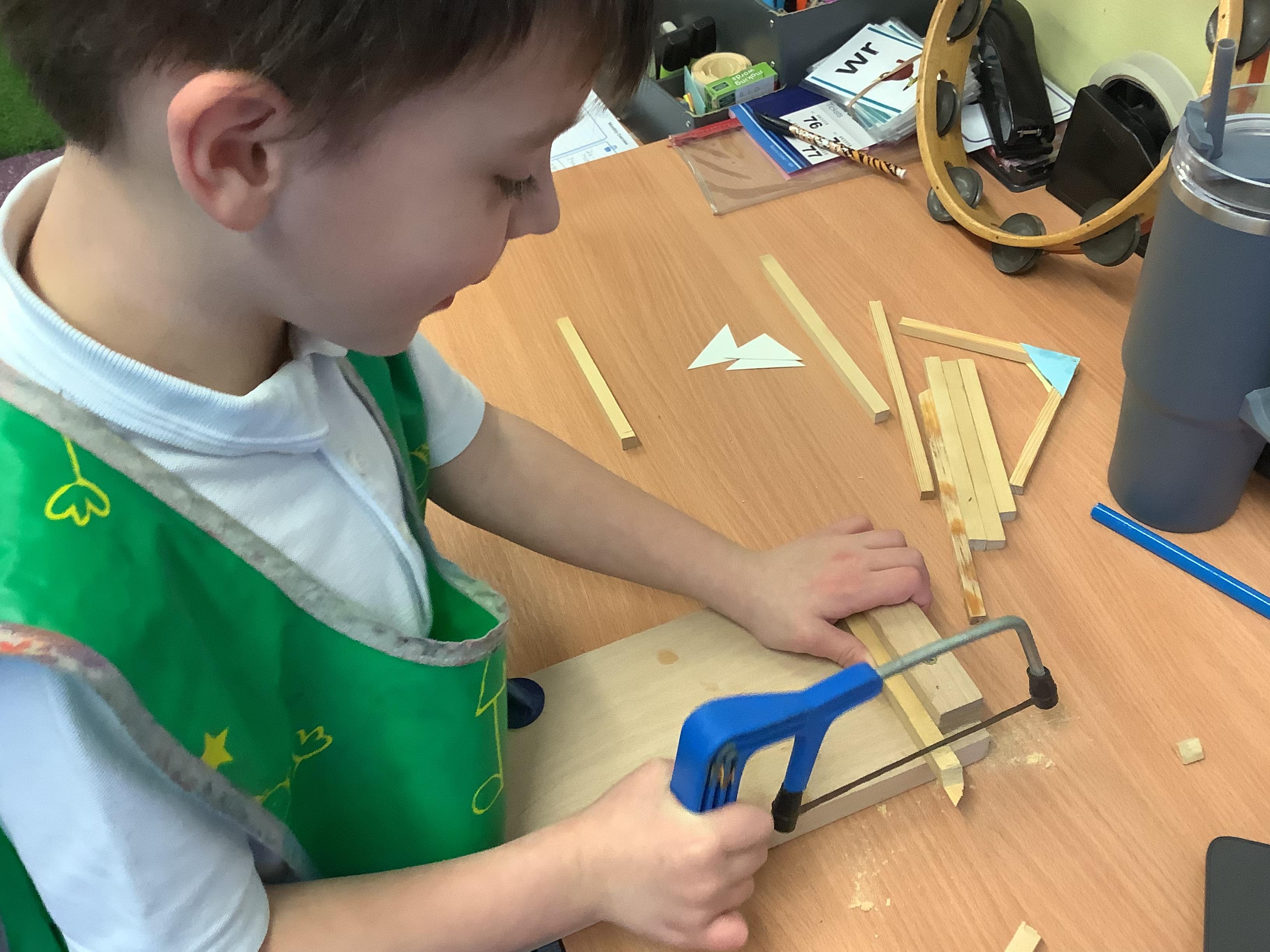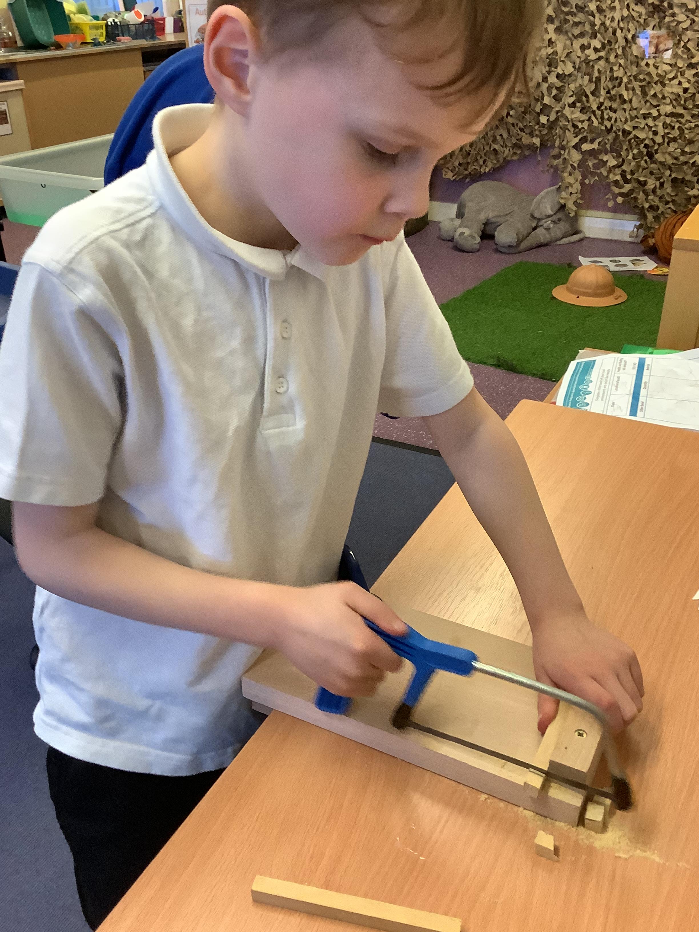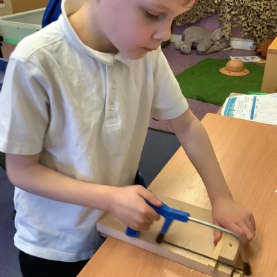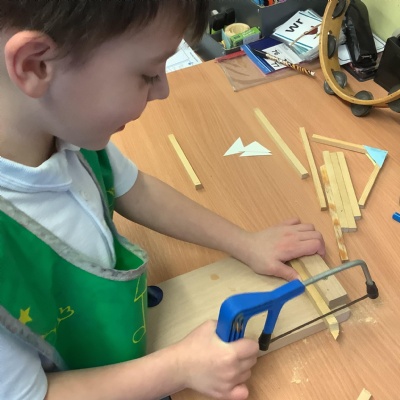 We explored different types of picture frames and what materials they are made from. We then planned out which materials we would like to use and practised the skills we needed such as sawing wood and how to join pieces of wood to create our own.