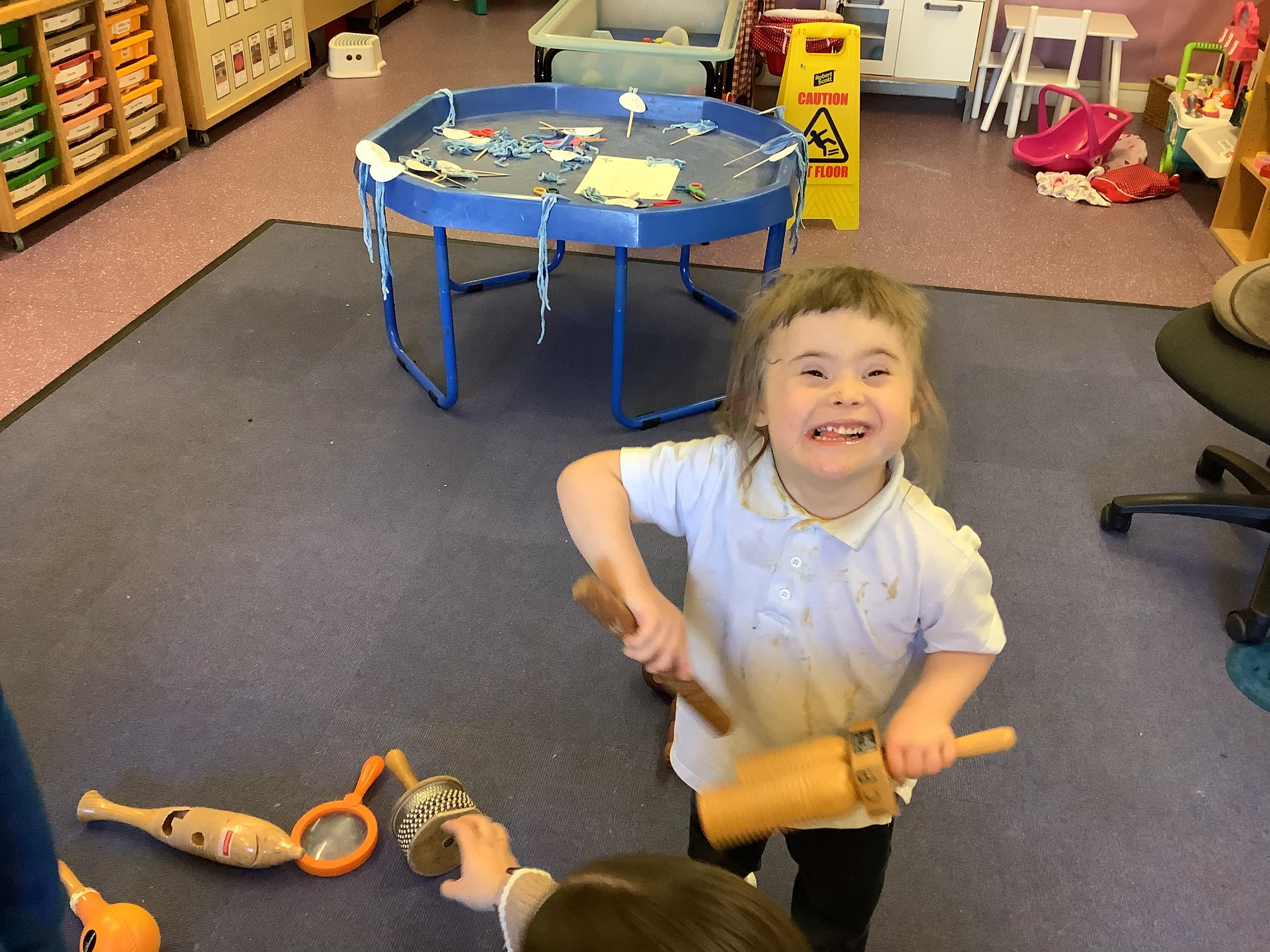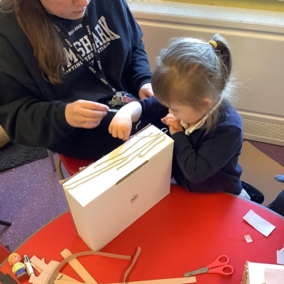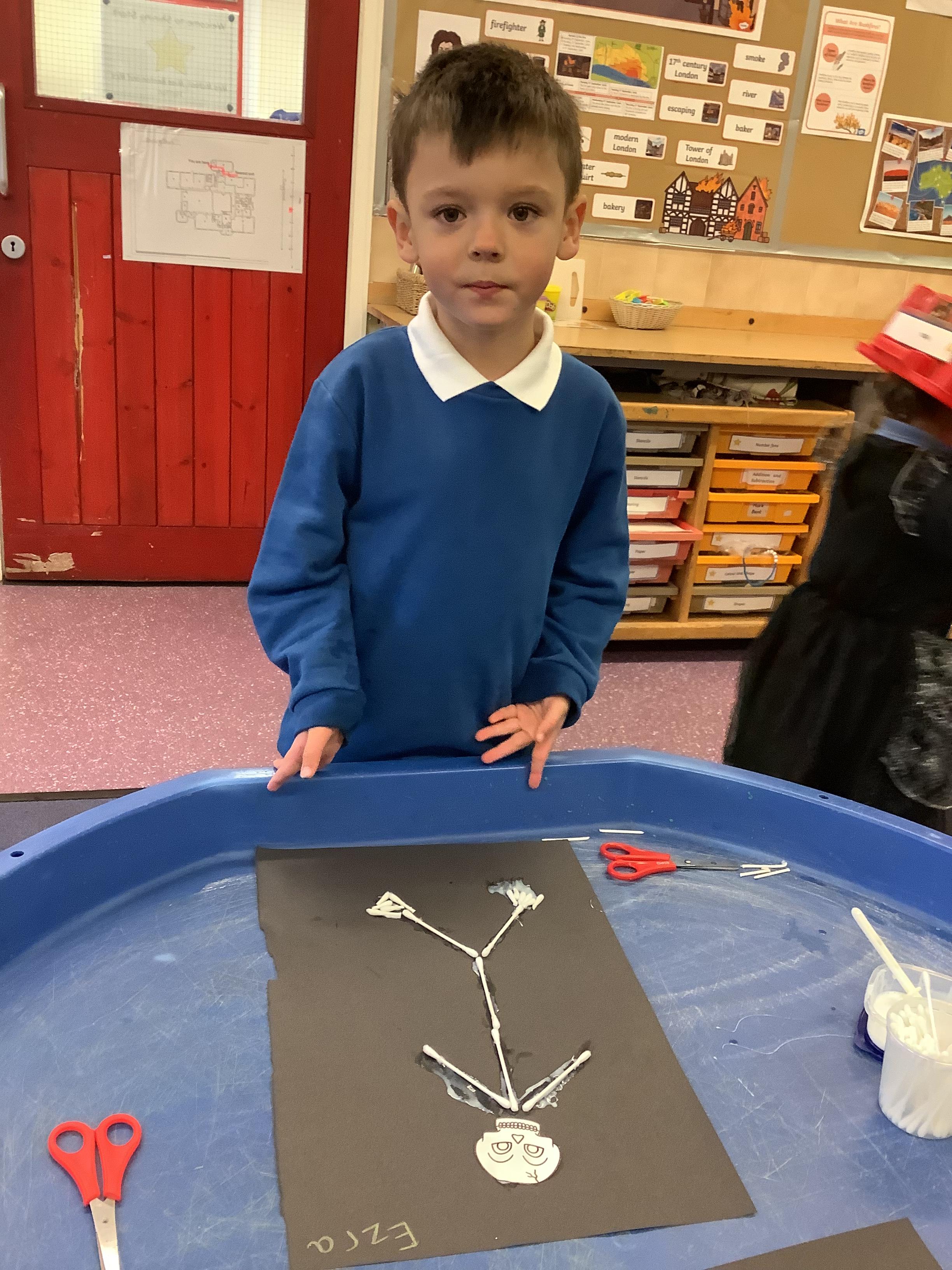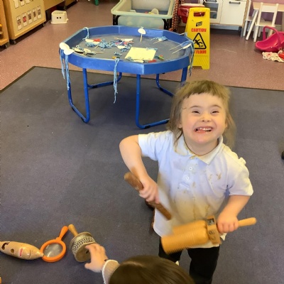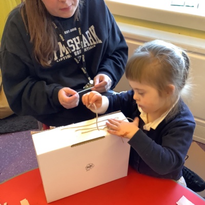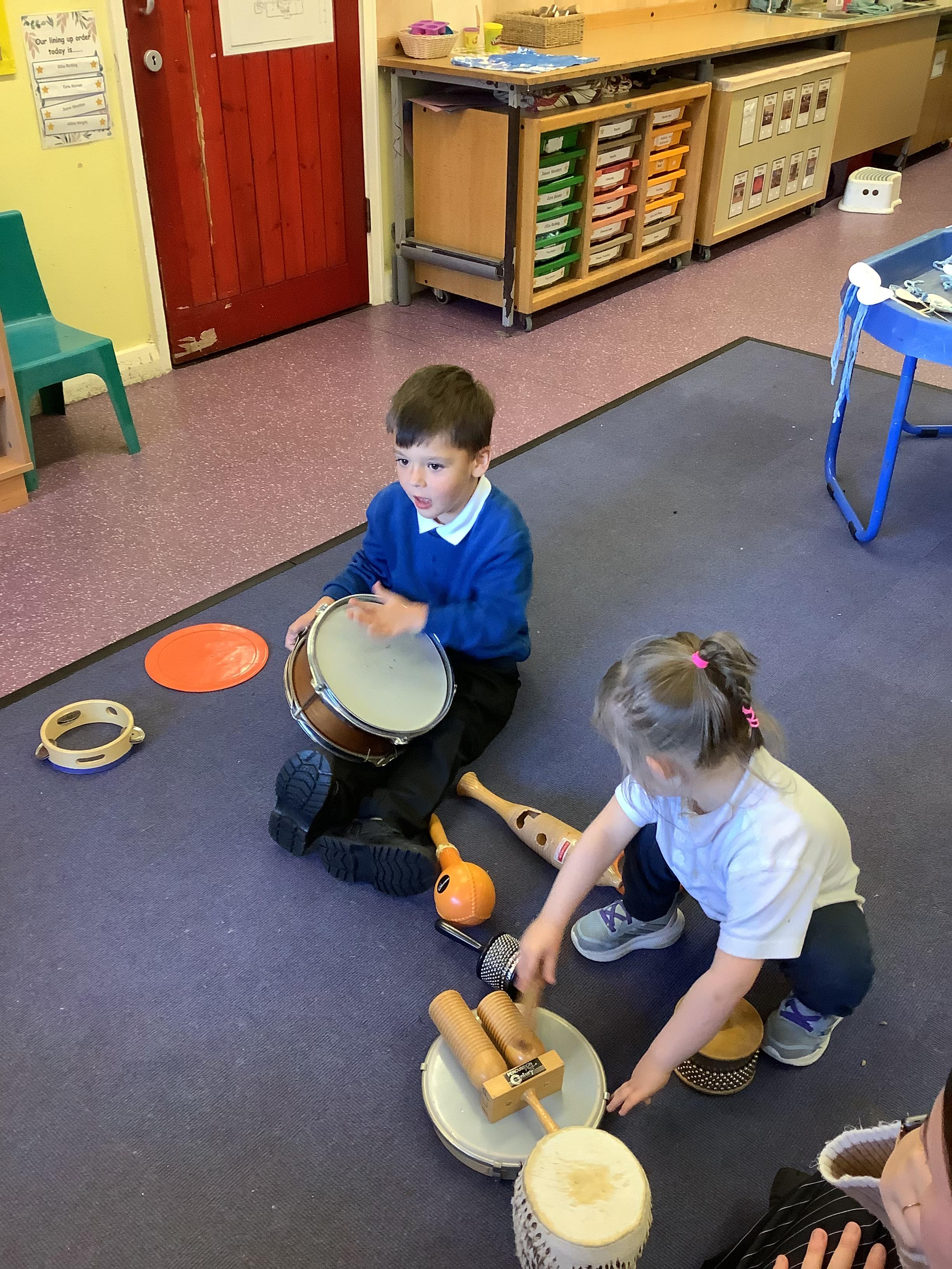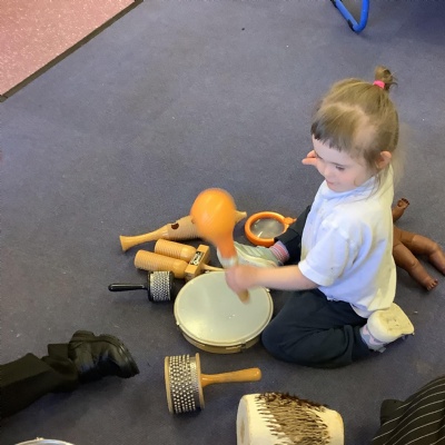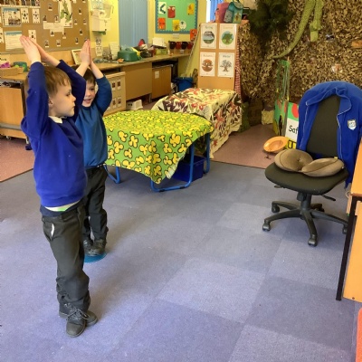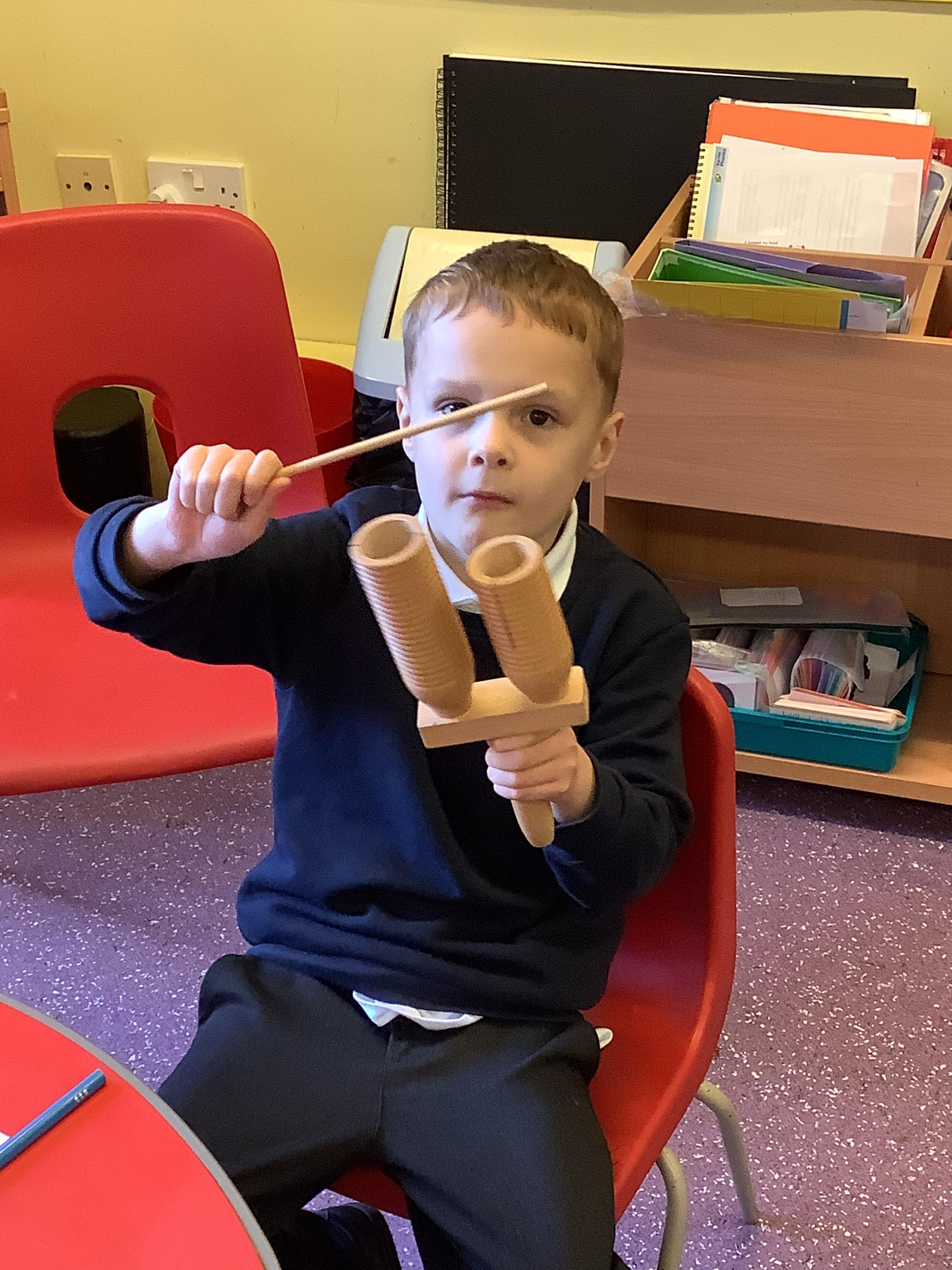 In science we have been discovering the basic parts of the human body. We have learned that our ears allow us to hear and tell which direction the sound is coming from. We also learnt that sound is made up of vibrations and we used our fingers to feel the vibrations we make when we hum. We then explored the different sounds that our instruments made and had a go at describing them using words from our vocabulary bank.