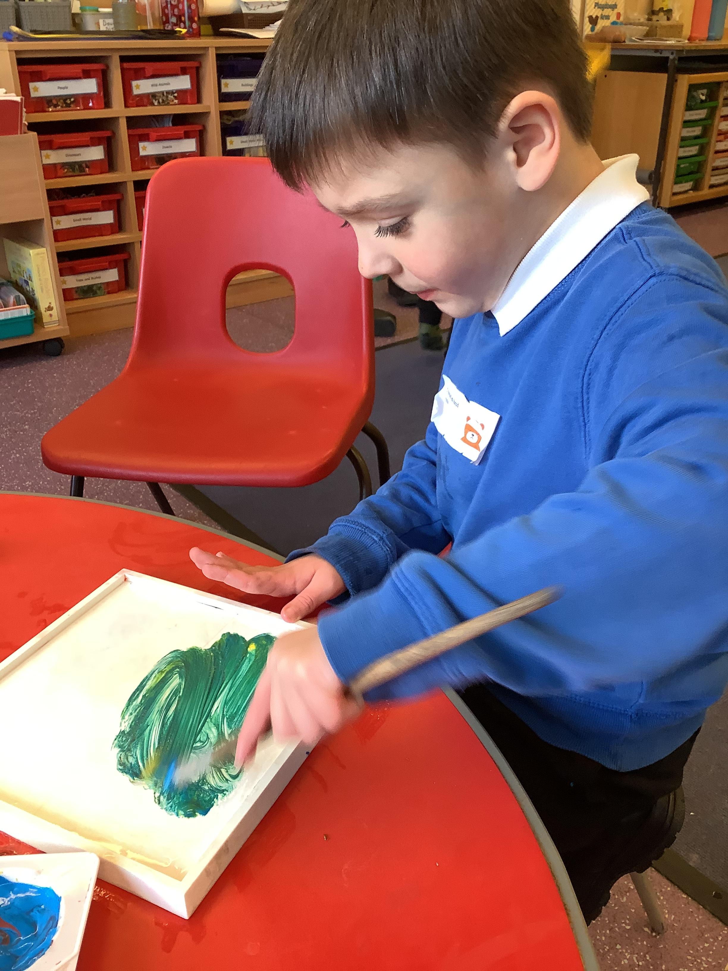 We have learned our primary colours of red, yellow, and blue, and used colour mixing to create our secondary colours of orange, green and purple. We have explored brush thickness and tone and looked at how warm and cool colours can create the mood of a picture.