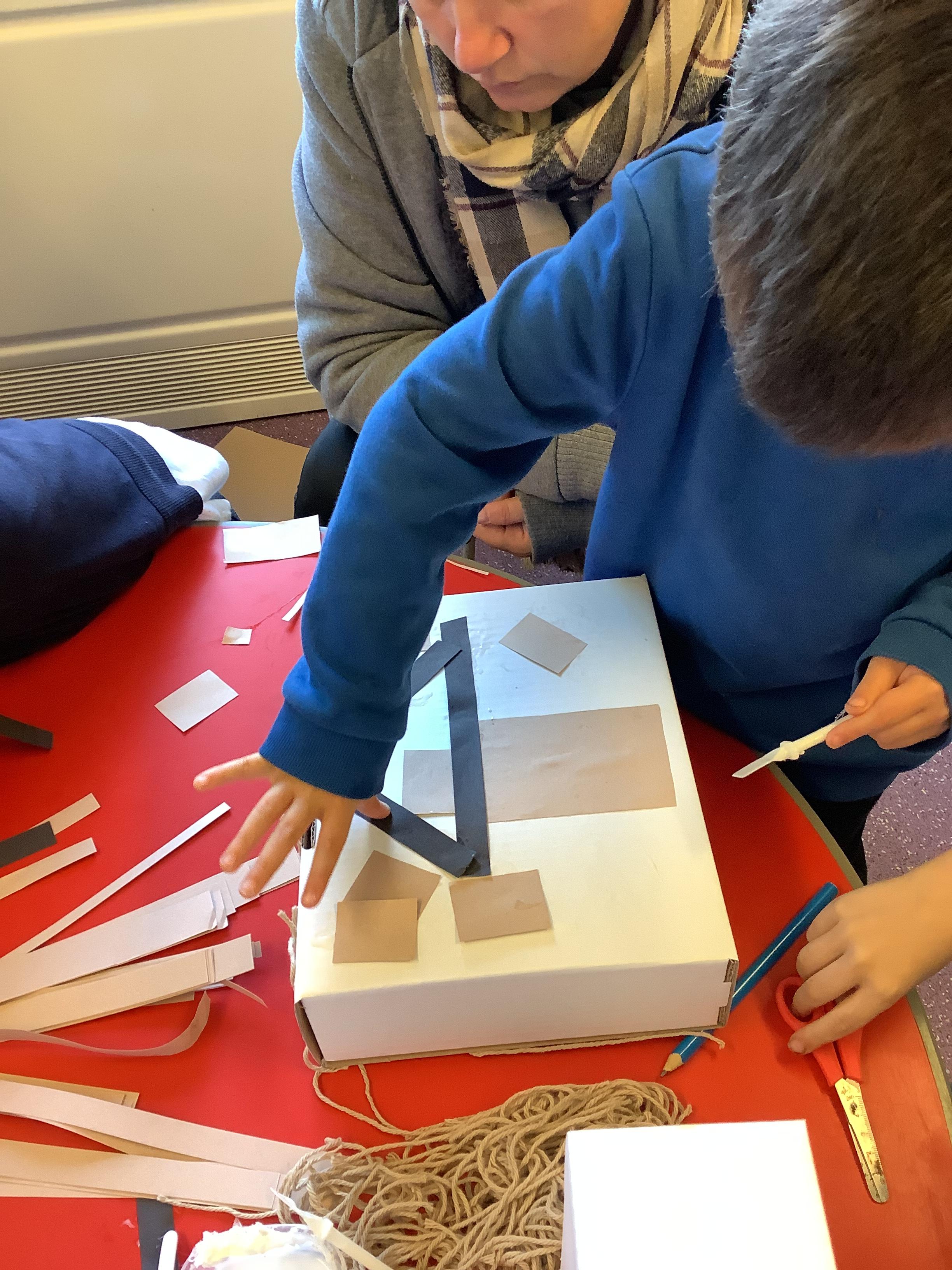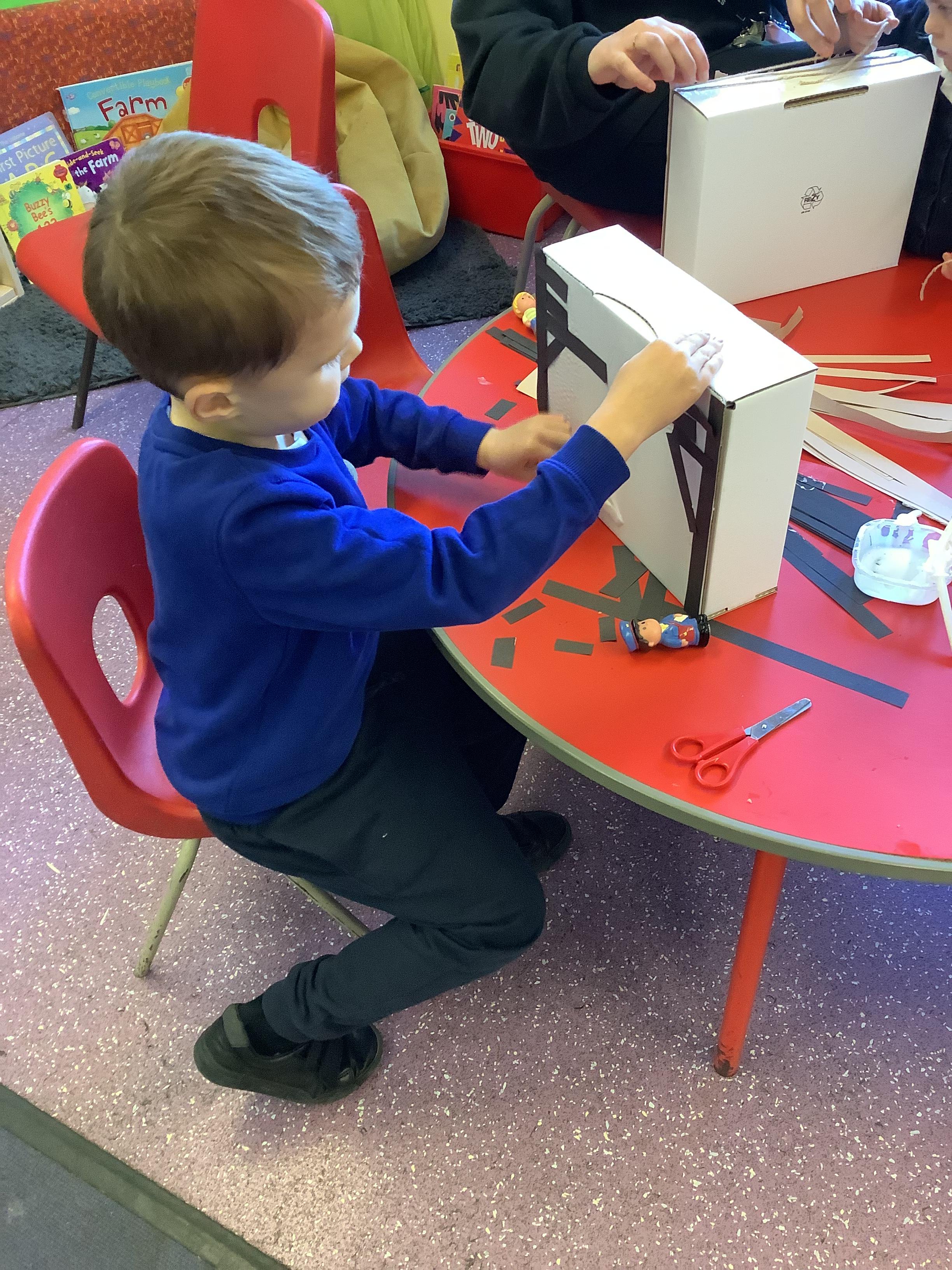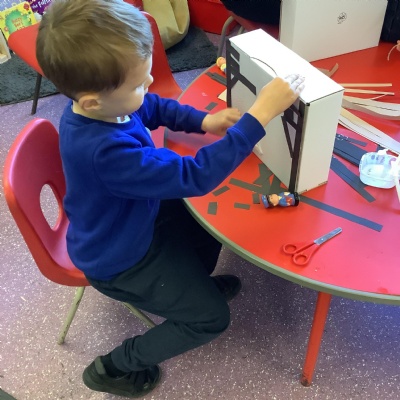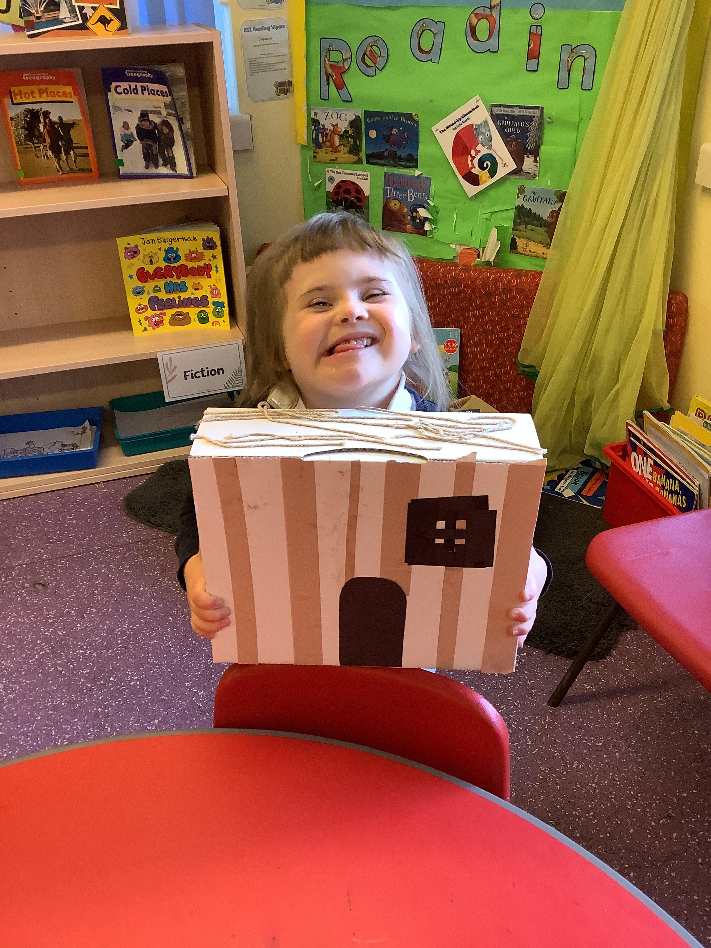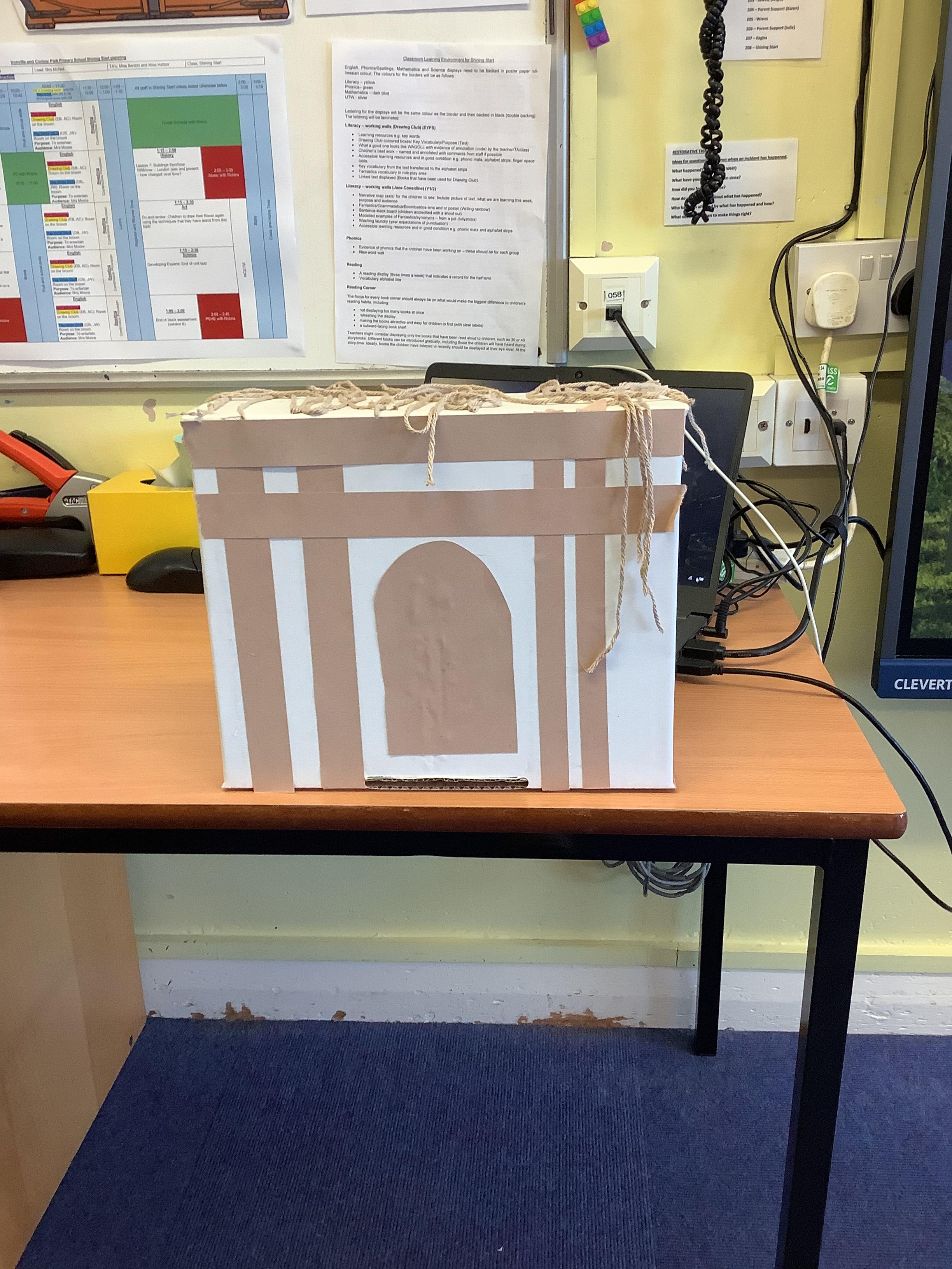 Look at our amazing Tudor houses! We built the houses to look like they did in the past around the time of ‘The Great Fire of London’ in 1666. We used wool to replicate the straw on the roof and we used strips of brown and black paper to replicate the wooden beams. We then put them close together to show how the fire spread so quickly.