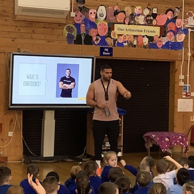 Gladiator Steel came in to talk to the children about becoming "Zactiv". GLADIATORS READY!