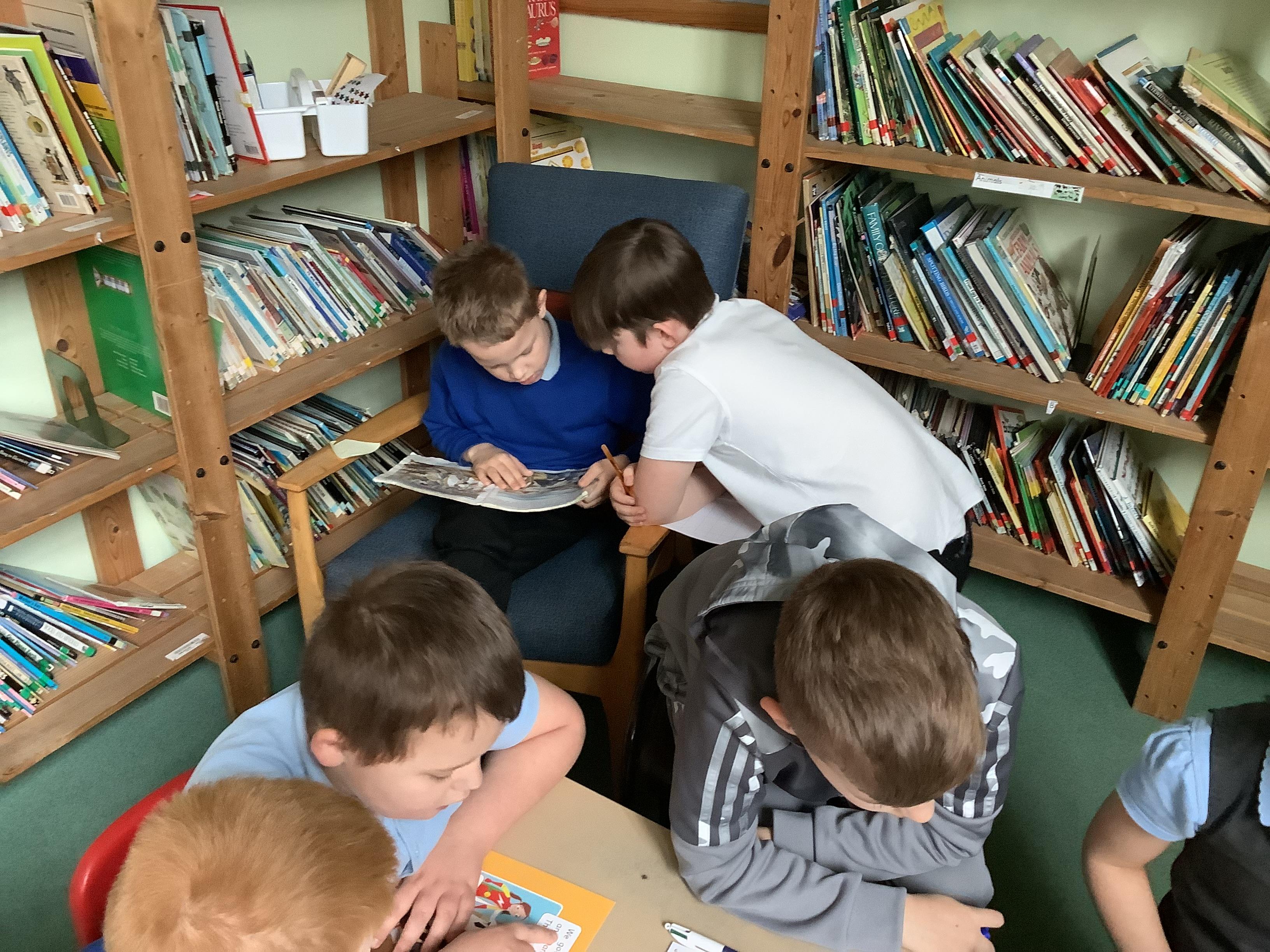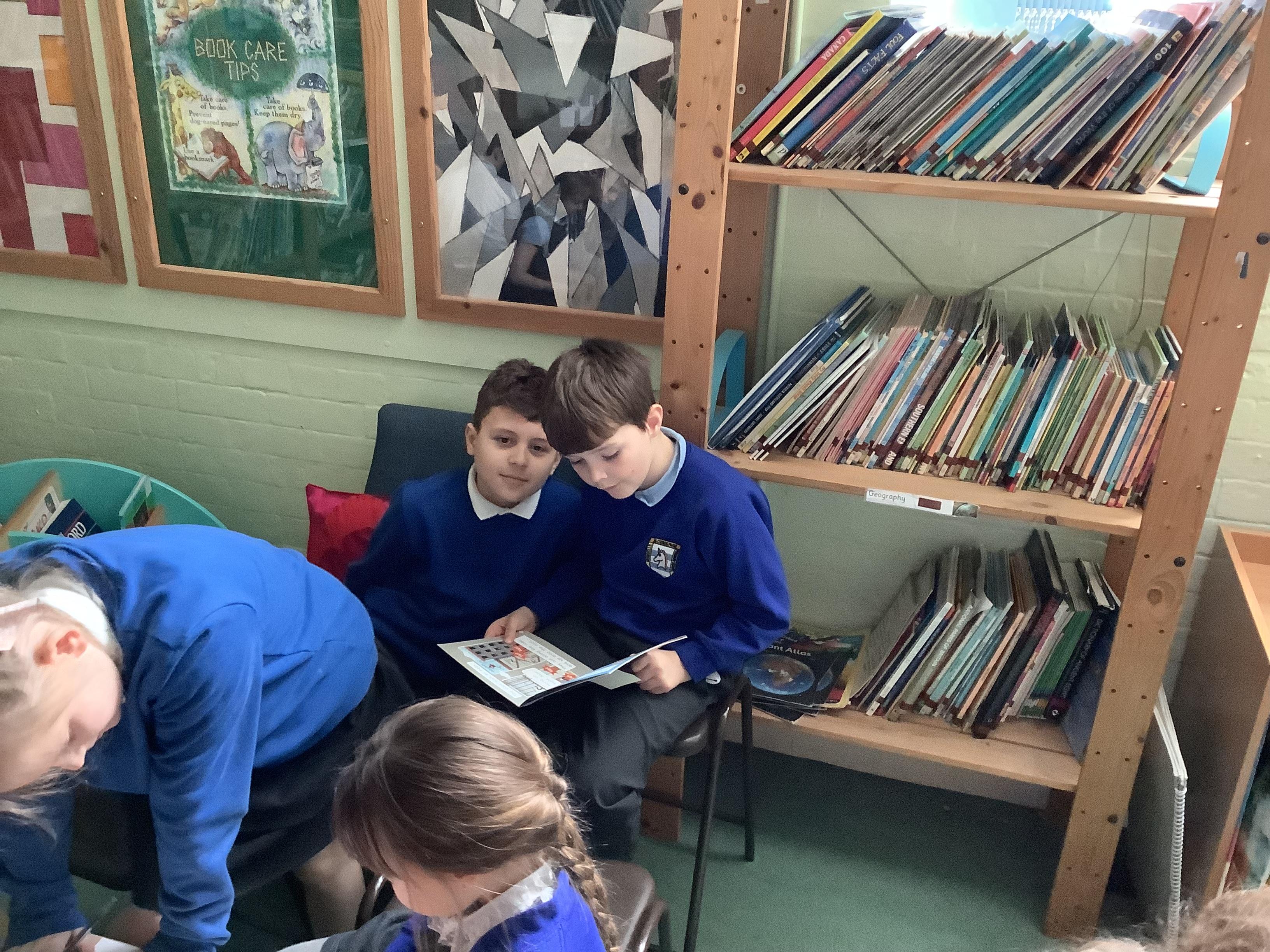 We have both a fiction and non-fiction library housing a range of good quality text types. Along with access to the library bus every four weeks, each child has opportunities to browse and enjoy books in their classroom book corners. The library is developing. The use of the library allows children to carry out research to support other curriculum areas.